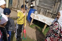 Акция "Неделя добра".Наши дети старшей и подготовительной группы, вместе с воспитателем помогли прибраться во дворе пожилой бабушке Зайнап апа. 07.09.2020