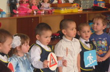 Обучение детей подготовительной группы ПДД на тему: «Путешествие по городу дорожных знаков».Цель: систематизировать знания детей о правилах дорожного движения, о дорожных знаках. Задачи: - уточнить и закрепить знания детей: о правилах поведения на улице, в общественном транспорте, о правилах дорожного движения, О различных видах транспорта, о дорожных знаках; - развивать внимание, логическое мышление, память, ориентацию в окружающей обстановке; - воспитывать культуру поведения на улице, в общественном месте, развивать чувство взаимопомощи. Материал: макет пешеходного перехода, дорожные знаки «светофор», «автобусная остановка» на стойке, запись на диске «автомобильный гудок», плакаты по ПДД, Дорожные знаки, Транспорт, иллюстрации (древний транспорт, различные виды транспорта), пешеходные переходы (наземный, надземный, подземный), «светофор» для игры (2 кружка: красный - жёлтый, зелёный – жёлтый), медальоны «Дорожные знаки» на каждого ребёнка, книги о правилах дорожного движения. Предварительная работа: экскурсии к светофору, наблюдения за транспортом, рассматривание дорожных знаков, беседы, чтение художественной литературы, лепка и рисование дорожных знаков, различных ситуаций на улице, транспорта. 15.05.2017