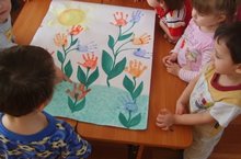 «Красивые цветы для пчелки» рисование. Программное содержание: Поддерживать интерес к изобразительной деятельности; Продолжать учить рисовать ладошкой и пальчиком на листе бумаги; Закрепить знания красного и зеленого цветов; Развивать воображение; Воспитывать аккуратность. Материал: альбомные листы, пальчиковая краска, салфетки. 18.05.2017