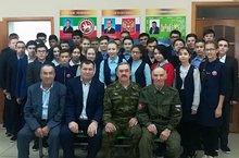 Встреча с ветеранами армии 07.12.2019 6 декабря 2019 года в МБОУ "Нижнеметескинская СОШ имени Д.Г.Хакимова" проведено мероприятие, посвященная "Дню Героев Отечества" . Были приглашены , руководитель Арской районной общественной организации "Боевое братство", подполковник - Багаутдинов Сергей Лимусович и прапорщик- Гафиятуллин Нурислам Нуруллович. Руководителем образовательной организации, была проведена экскурсия по школе и гости ознакомились с кабинетом Юнармии.