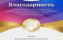 Котлыйбыз! 05.06.2020 VIDEOUROKI.net халыкара проекты укытучылар өчен дистанцион укыту инструментларыннан актив файдаланган Закирова Л.Ә.га рәхмәт белдерә.