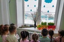 Группабызның тәрәзә төпләрен матурлап, яшеллеккә күмдек. Балалар белән бергәләп суган, сарымсак утырттык, борчак, солы, арпа чәчтек. Аларга су сибеп, үскәннәрен күзәтеп торабыз.