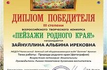 "Туган ягым табигате" темасы буенча фотобәйгедә өченче урын алган Зайнуллина Альбинаны котлыйбыз, яңа уңышлар телибез!