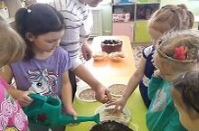Бүген зурлар төркемендә балалар суган һәм борчак утыртылар.Тәҗрибәнең төп максаты булып, балаларда суган, борчак үстерү теләге тудыру, хезмәткә хөрмәт тәрбияләү, аларның файдалы яшелчә икәне турында төшенчә бирү, яшелчәләр үстерү турында белемнәрен тулыландыру булды. Үсентеләребез кайчан үсеп чыгар, бергәләп күзәтеп торачакбыз.