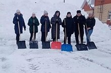 Коллектив белән бергәләп бакчабыз территориясен кардан чистарттык.