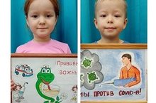 Участвовали в конкурсе рисунков для дошкольников "Стоп, COVID-19!", "Прививки важны!"