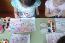Коры кәгазь биттендә генә ясап була дип әйтүчеләр ялгышалар. Юеш альбом бите рәсемләү өчен менә дигән өслек. Альбом битен тулы килеш чиста мамык кисәге белән чылатабыз. Рәсем ясау өчен барысы да әзер – телисез икән кисточка белән, телисез икән бармаклар ярдәмендә рәсем төшерә аласыз. Без дә бүген рәсем эшчәнлегендә шушы ысулны кулланып рәсем ясадык. Берсеннән-берсе матур рәсемнәр килеп чыкты.Соңыннан алардан күргәзмә оештырдык.