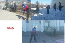 Бүген дәресләрдән соң мәктәпкүләм өмә үткәрелде. Мәктәп тирәсендәге карлар таратылды, чүпләр җыелды.