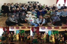 Бүген мәктәбебездә Әтнә дәүләт драма театрының "Кәҗә белән сарык маҗаралары" дигән спектаклен карадык. Г.Тукай әсәрләрен эченә алган бу музыкаль тамаша укучылар өчен тәрбияви чара булды. Артистларга чын күңелдән рәхмәт, эшләрендә иҗади уңышлар телибез.