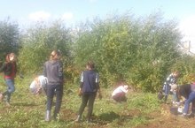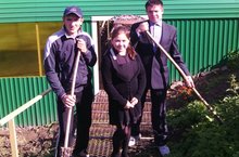 Укучылар һәм укытучылар җәй буе мәктәп бакчасында тырышып эшләделәр. Үстерелгән җиләк-җимеш, яшелчә уңышы мулдан булды. Бүген бәрәңге алынды, территория җыештырылды.
