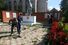 Һәйкәл яны чистартылды. 10.09.2015 9 нчы класс укучылары ел дәвамында һәйкәлне чистарту өчен җаваплы. Бүген алар һәйкәл янын чүп үләннәреннән чистарттылар,чәчәкләргә су сиптеләр.