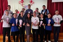 "SMS-дети" һәм "Добрые сердца" отрядлары мәктәбебездә эшлэүче гүзәл затларны бәйрәм белән котладылар.
