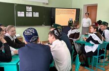 Дүшәмбе лнейкасы һәм флаг күтәрүдән соң тәрбия эше классларда "Разговоры о важном" циклы әңгәмәләре белән дәвам итте. Бүгенге тема - "Ватан сакчылары".