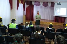 Безнең районда үткәрелә торган "Бала - баш пассажир" акциясе кысаларында безнең мәктәптә " Яктылык кайтаргыч элементлар ни өчен кирәк?", "Җәяүлеләр өчен юл хәрәкәте кагыйдәләре", "Җәмәгать транспортында үзеңне ничек дөрес тотарга" дигән темаларга чираттагы әңгәмәләр үткәрелде"