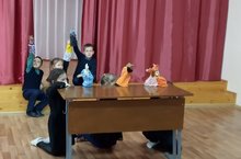 Сегодня наши молодые артисты ( ученики 2 класса) в гостях у малышей детского сада. Но пришли он сюда не с пустыми руками : в подарок принесли 2 сказки "Колобок" и "Теремок". Руководитель театрального кружка Ахунова Л.А.