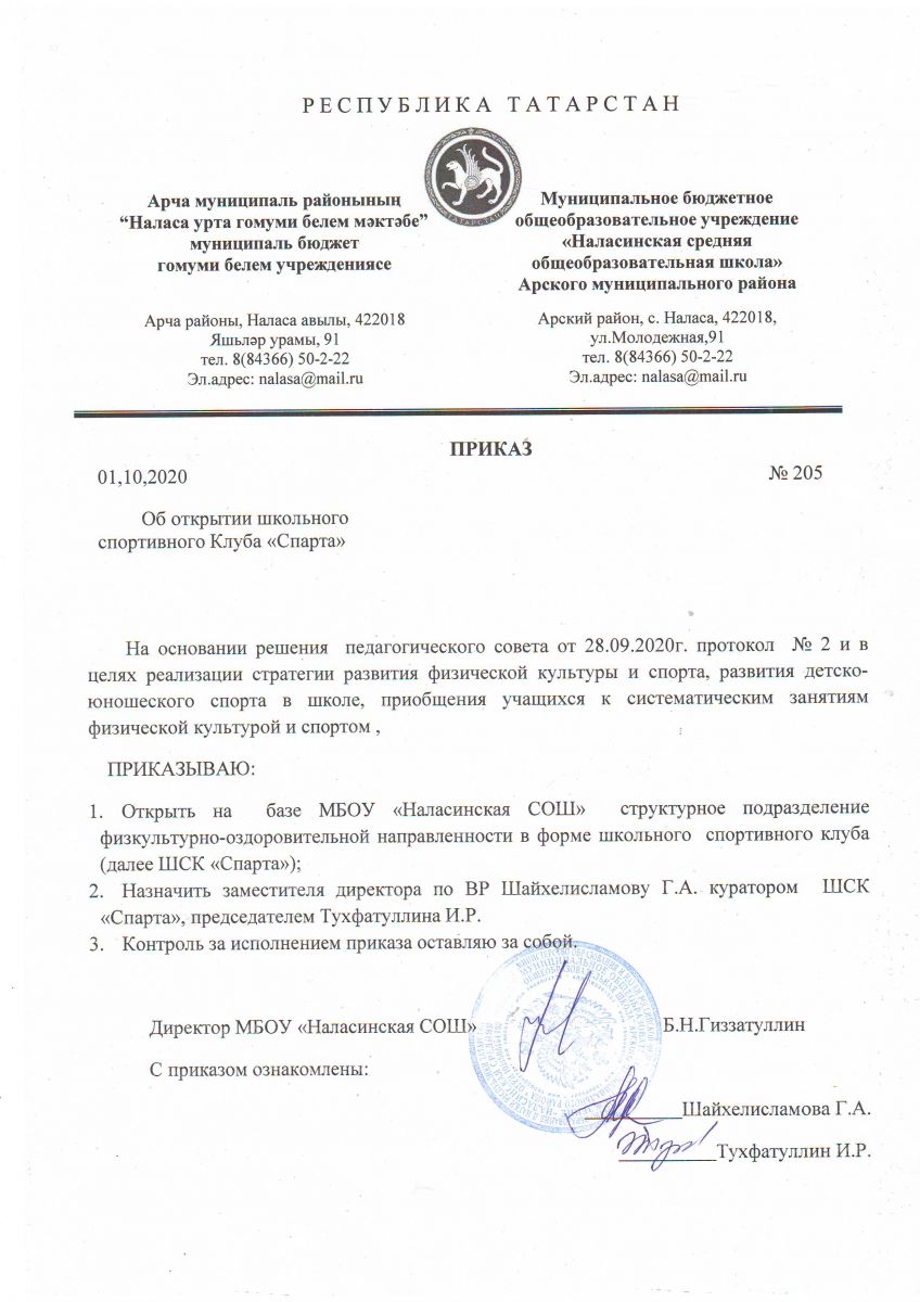 Адрес: 422018, РТ, Арский район, с. Наласа, ул. Молодежная, д. 91