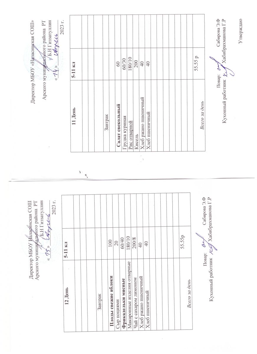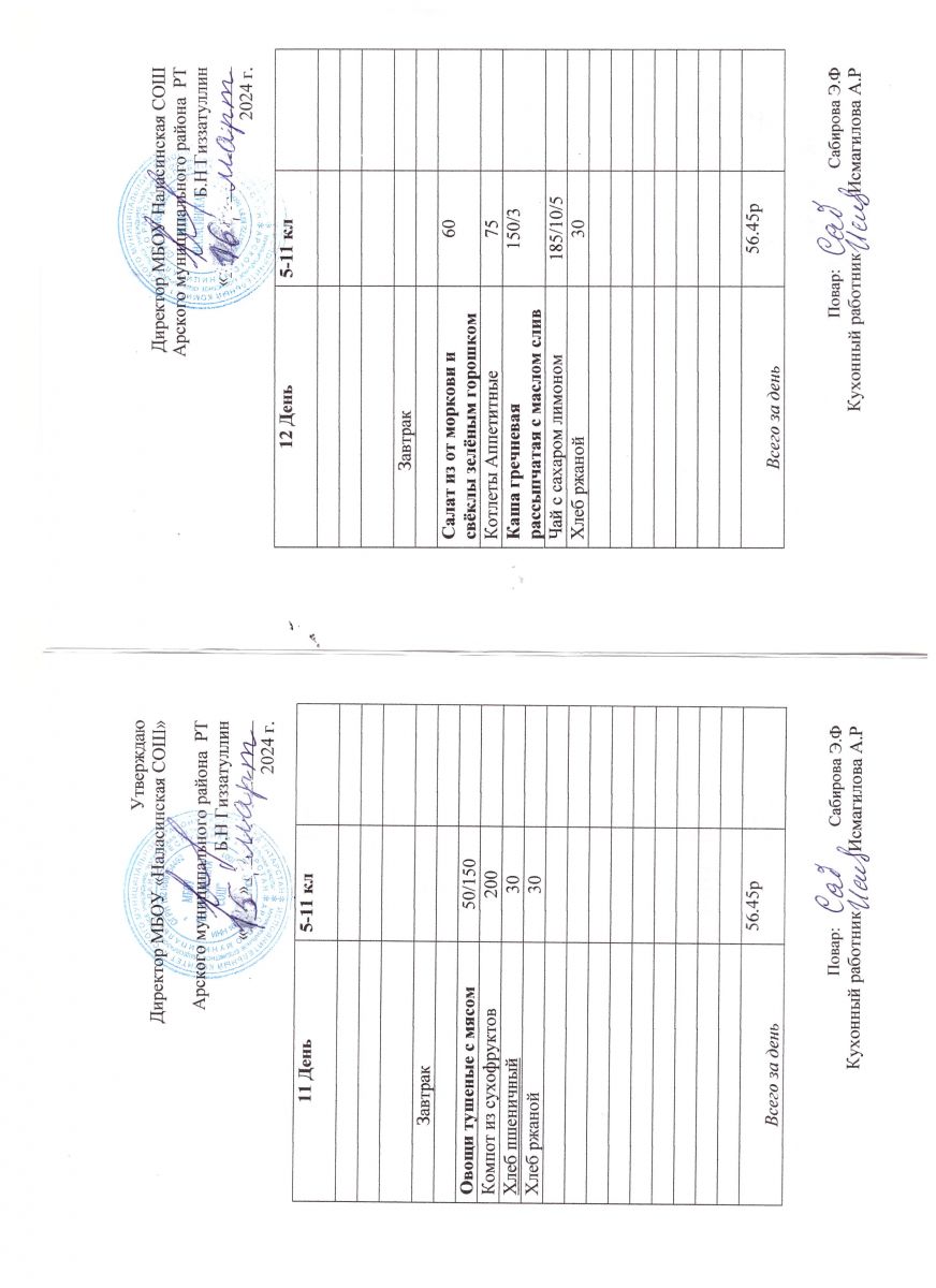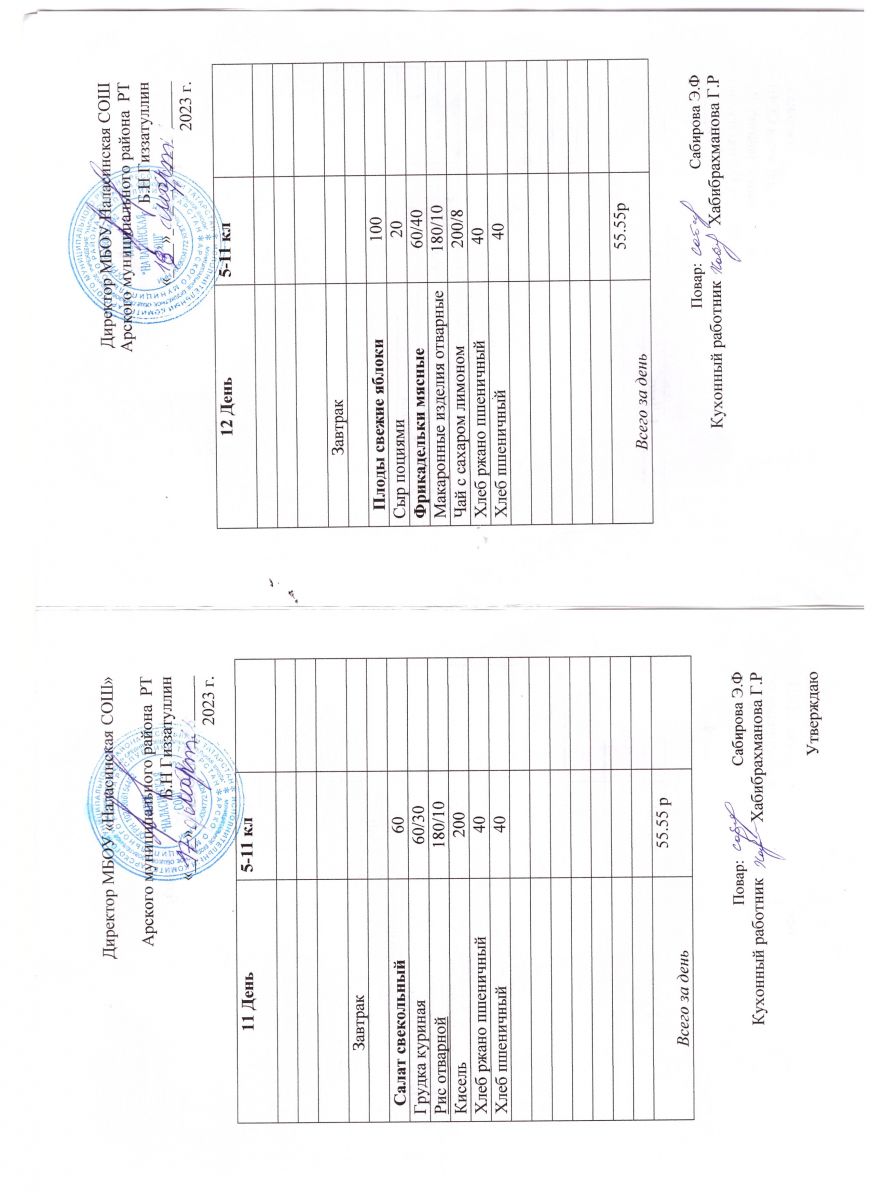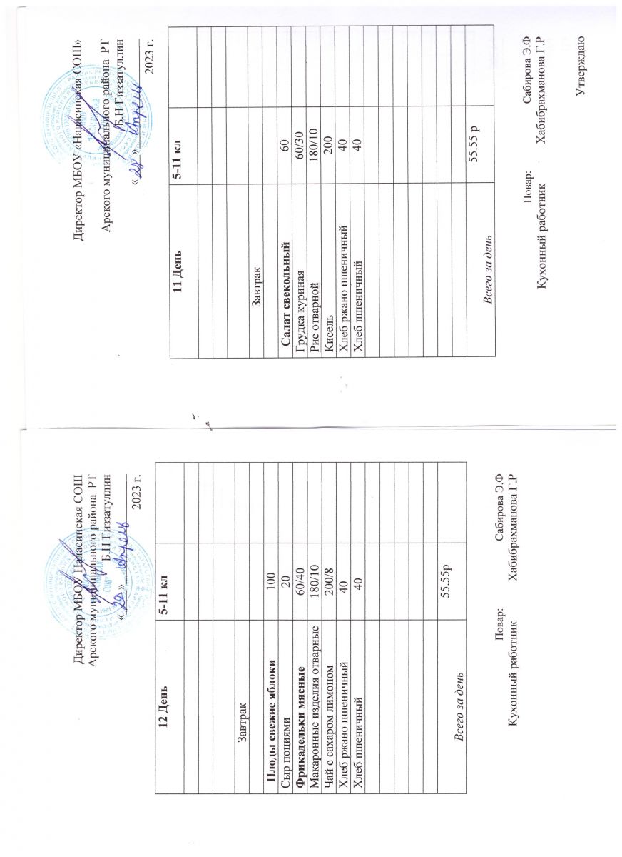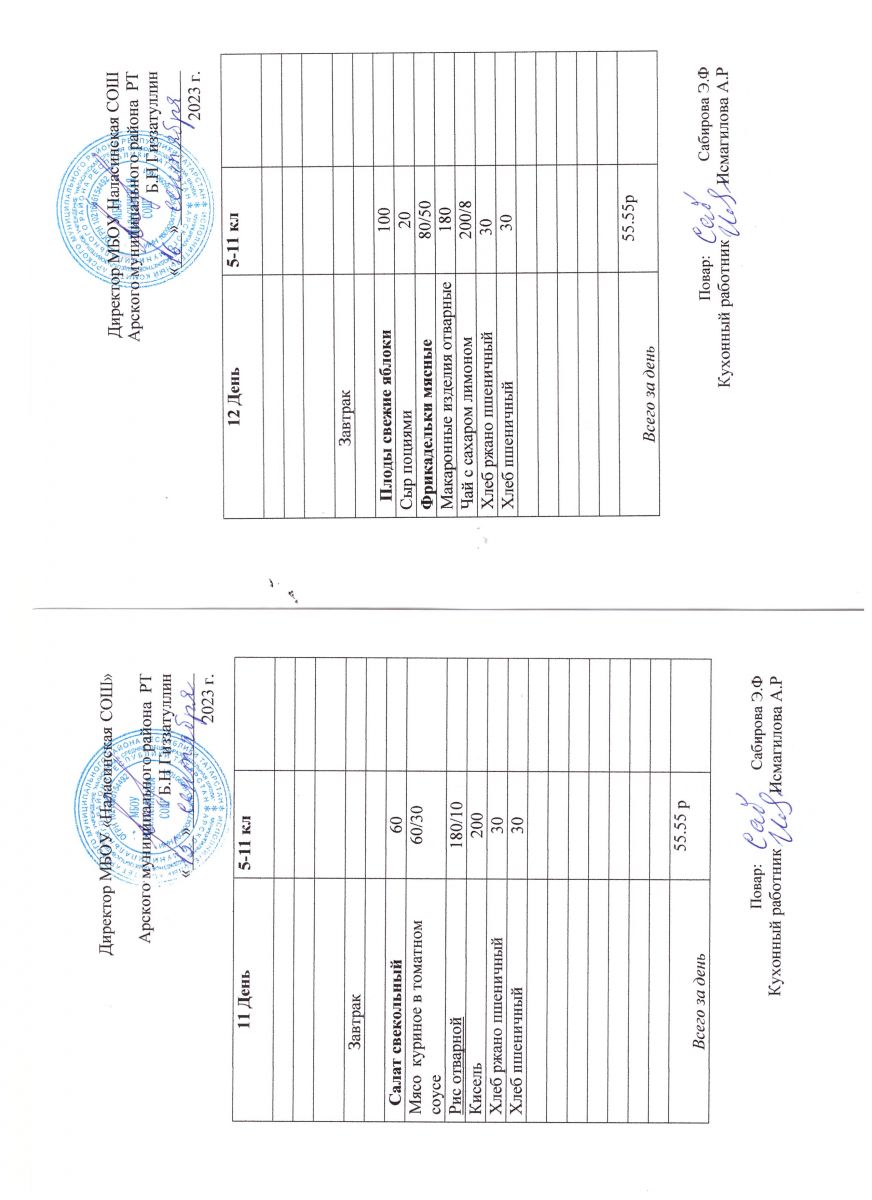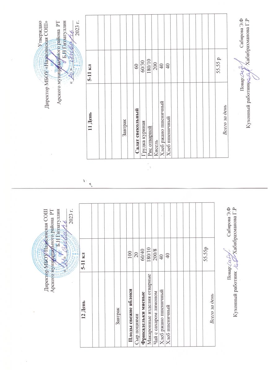 Примерное двенадцатидневное меню для учащихся 5-11 классов на 2023-2024 учебный год