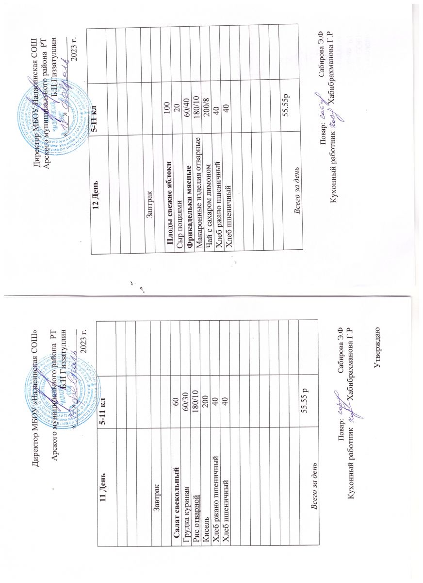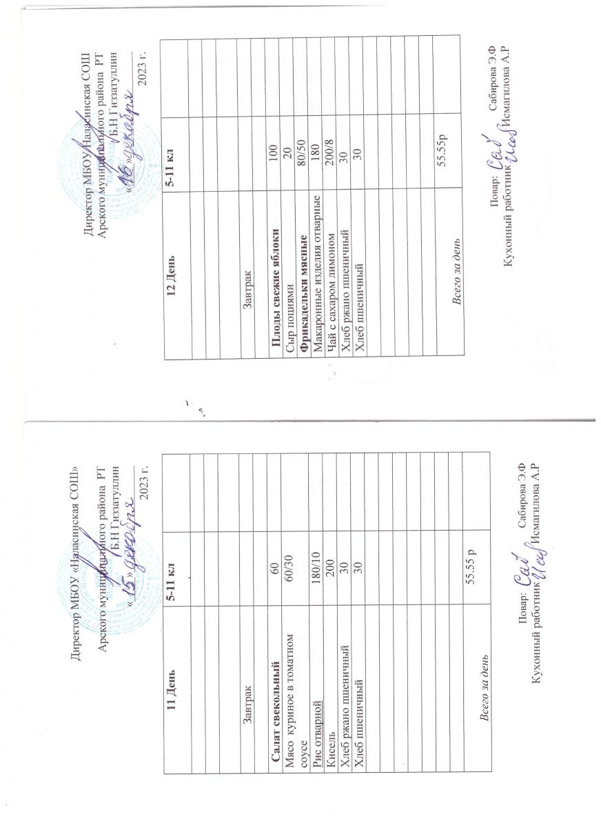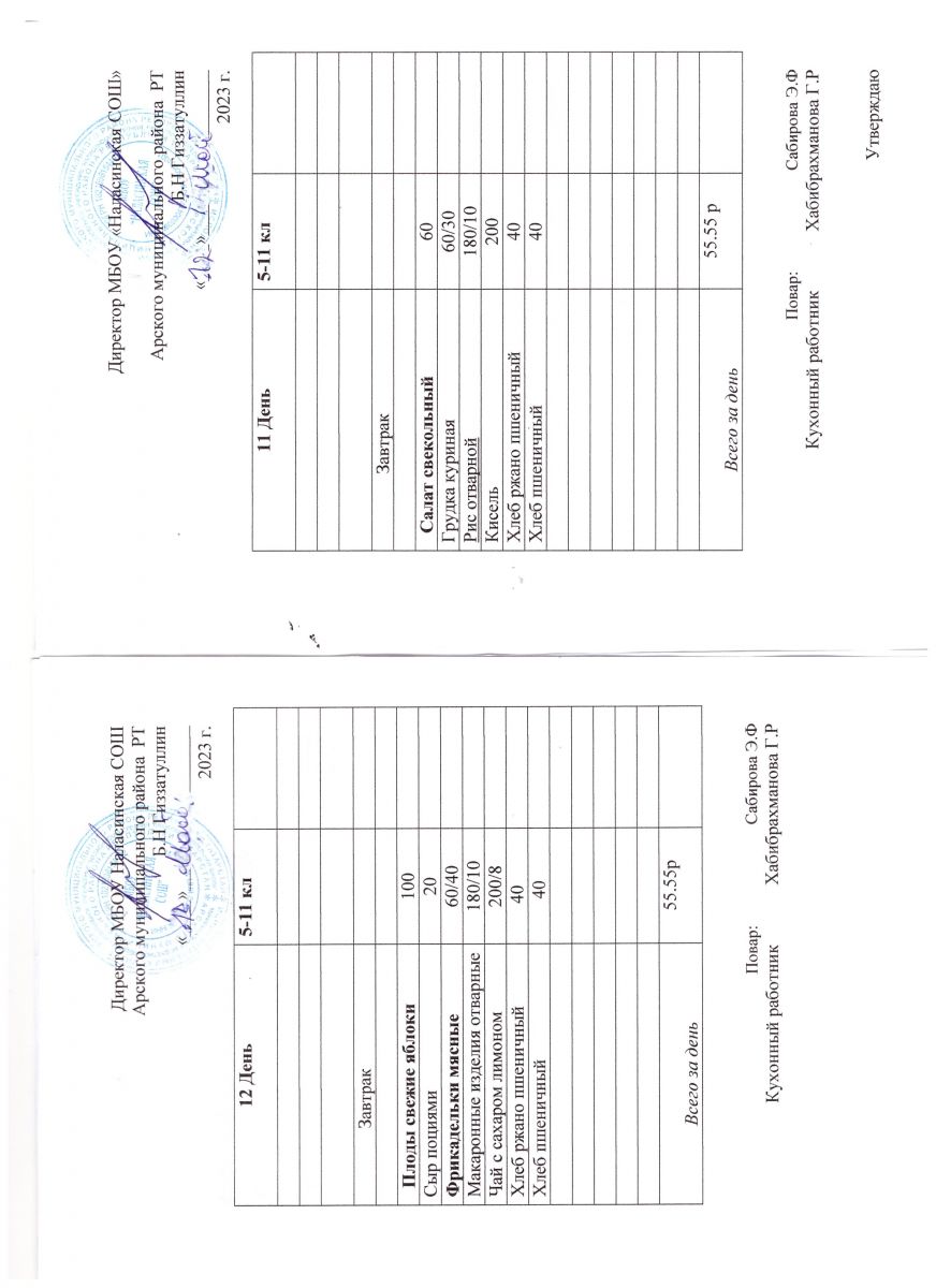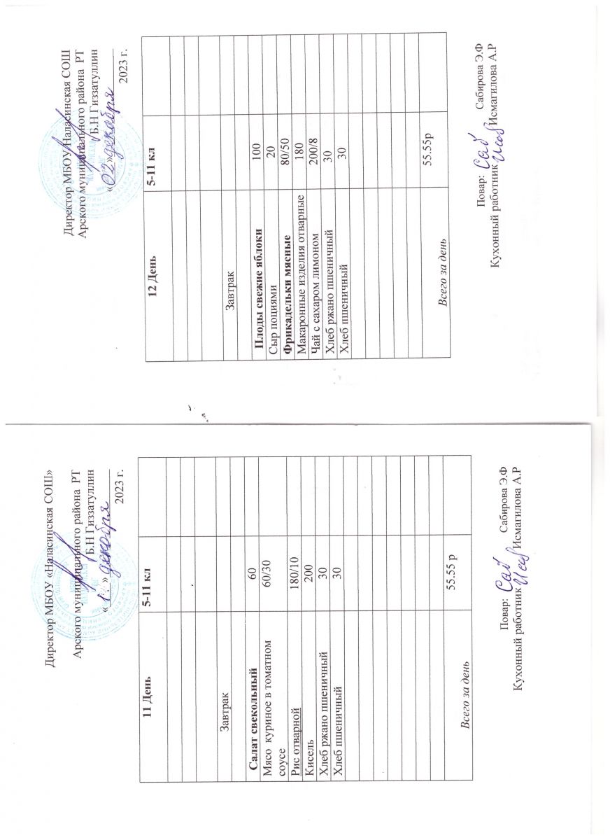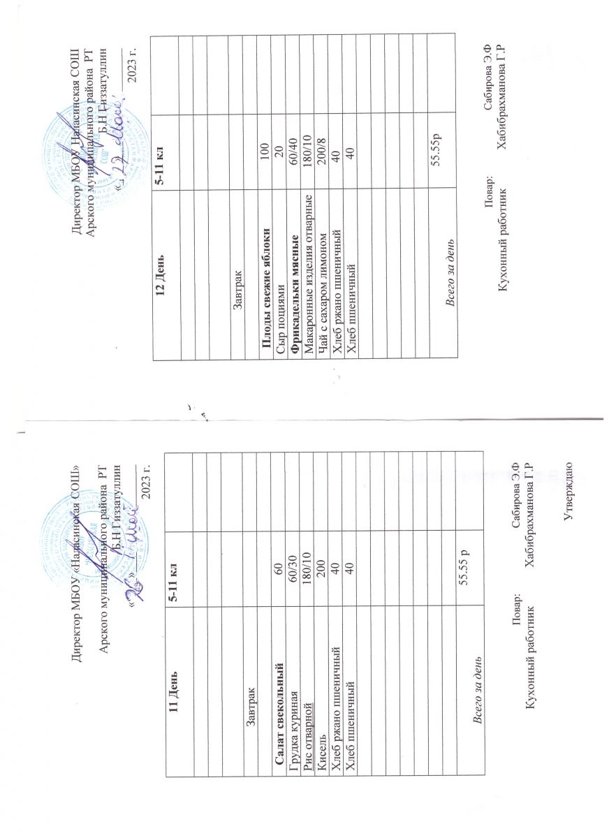 Примерное двенадцатидневное меню для учащихся 5-11 классов на 2023-2024 учебный год