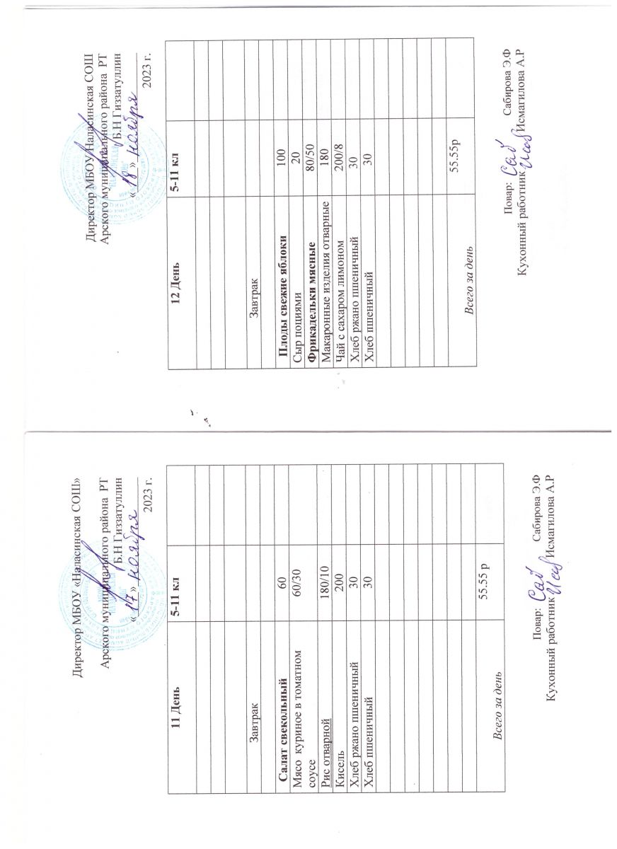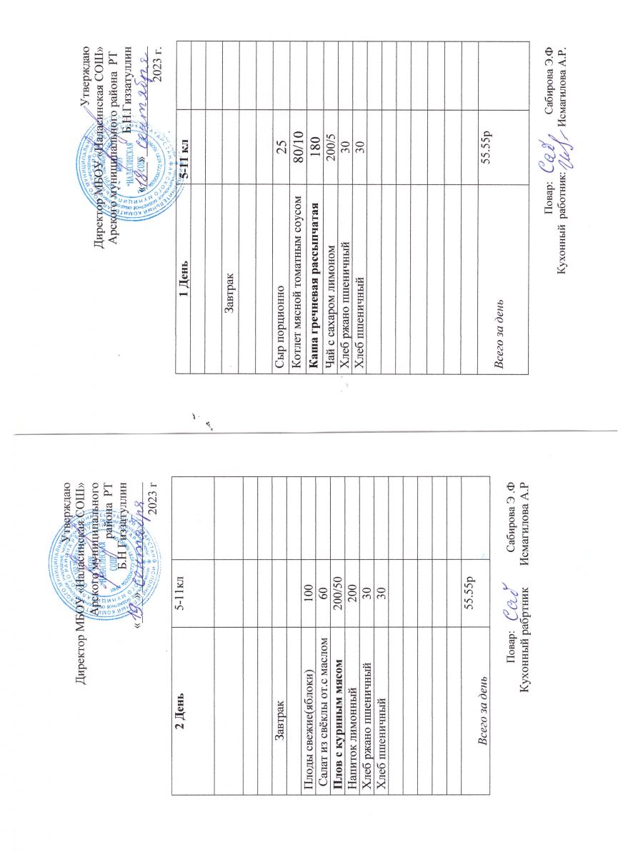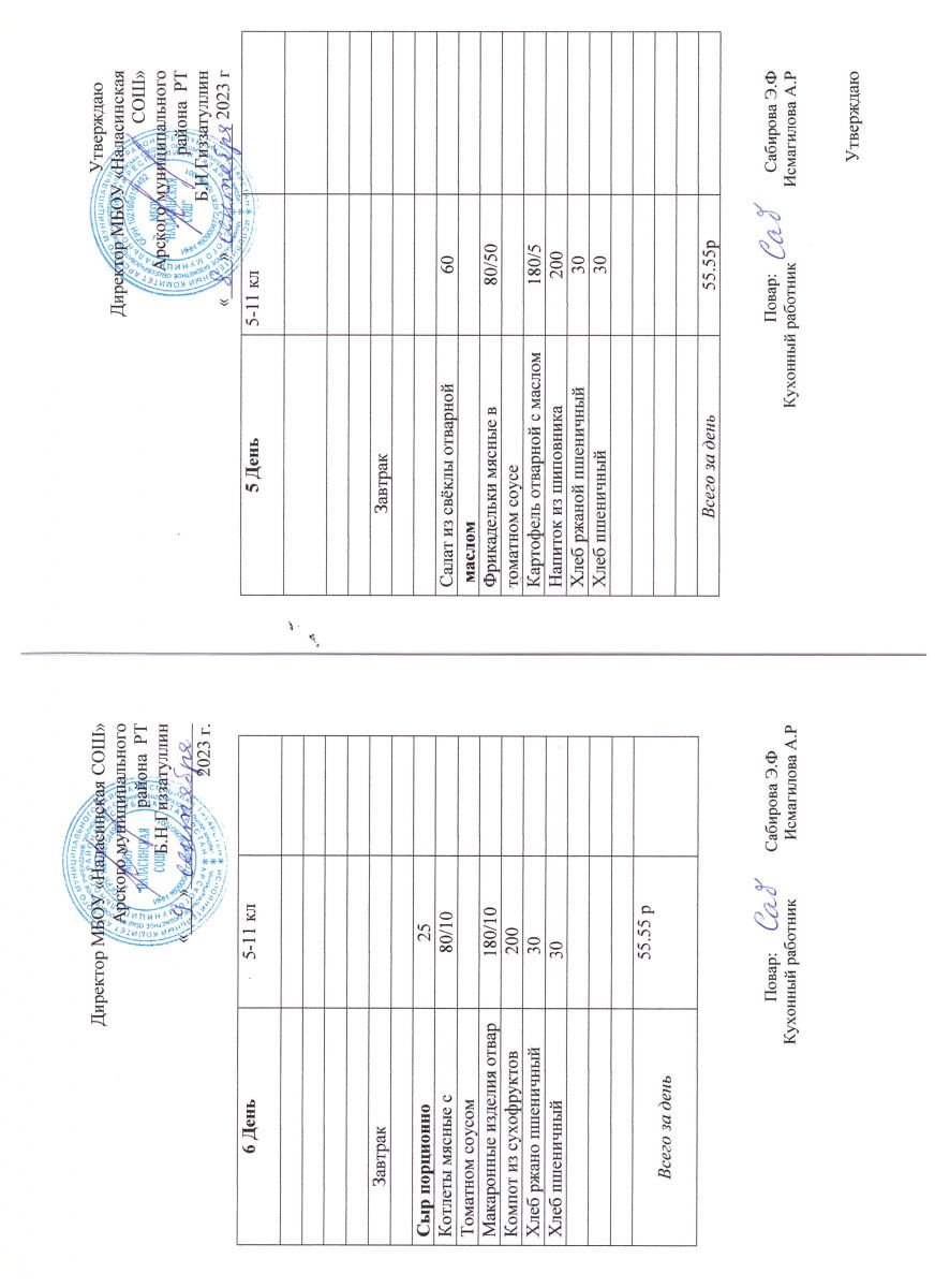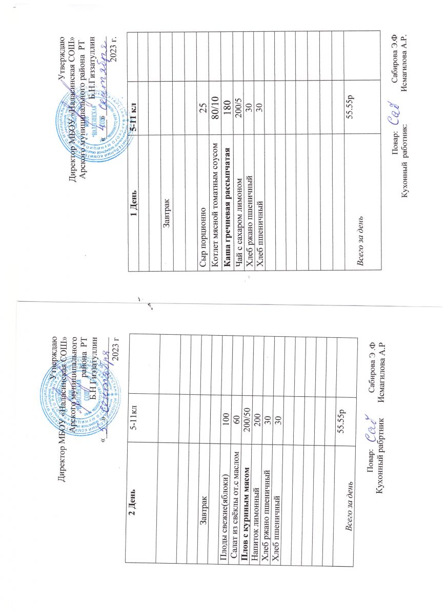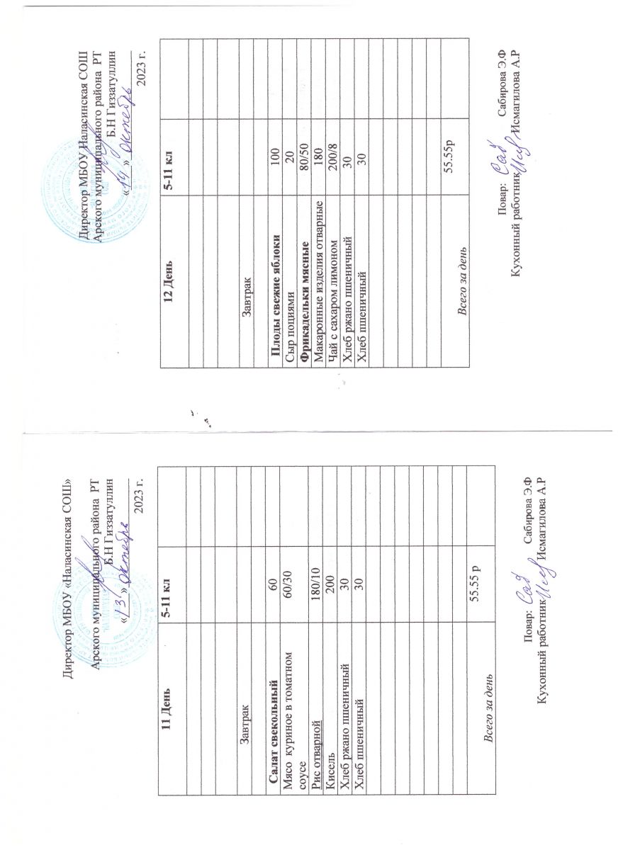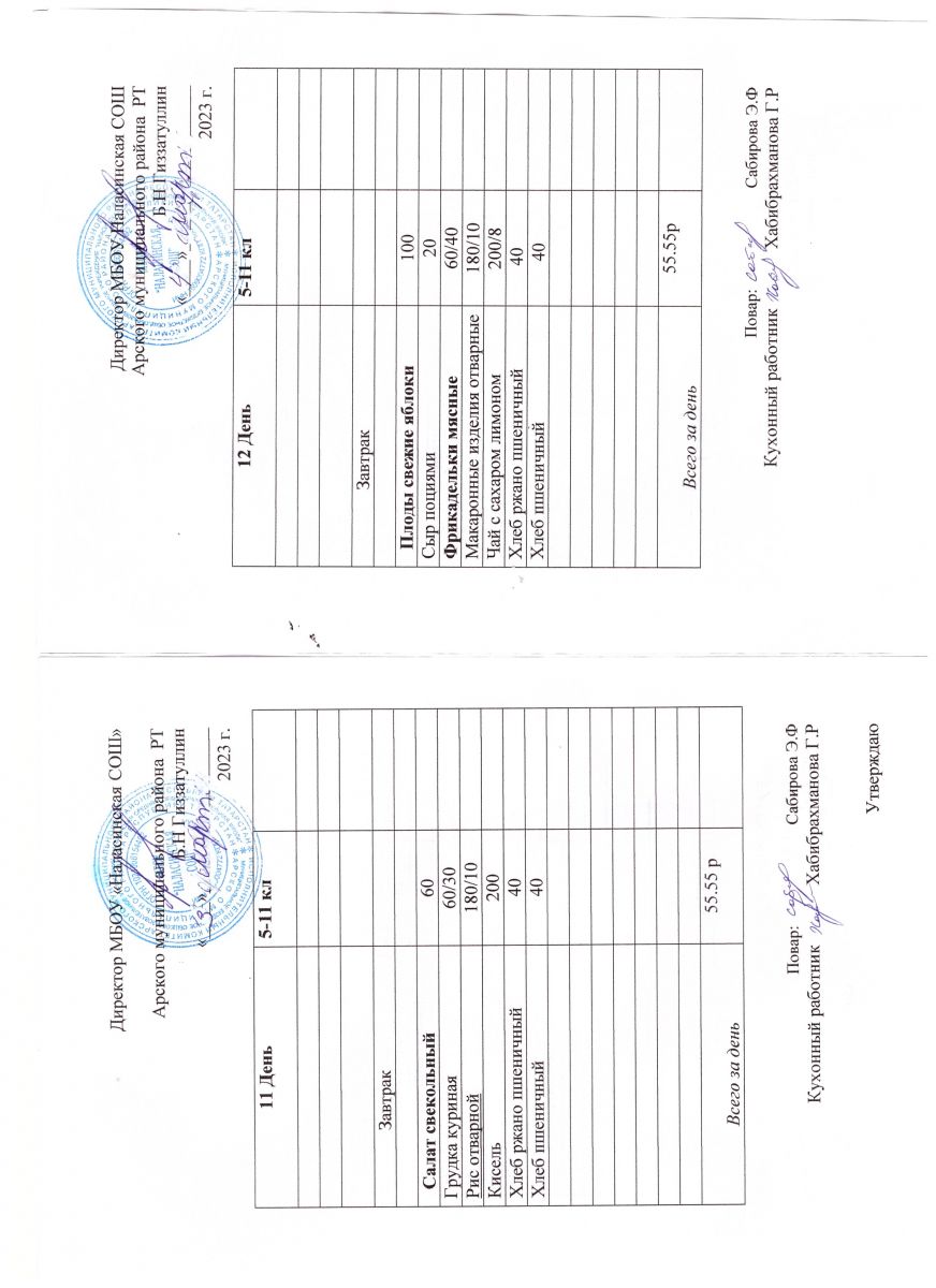 Примерное двенадцатидневное меню для учащихся 5-11 классов на 2023-2024 учебный год