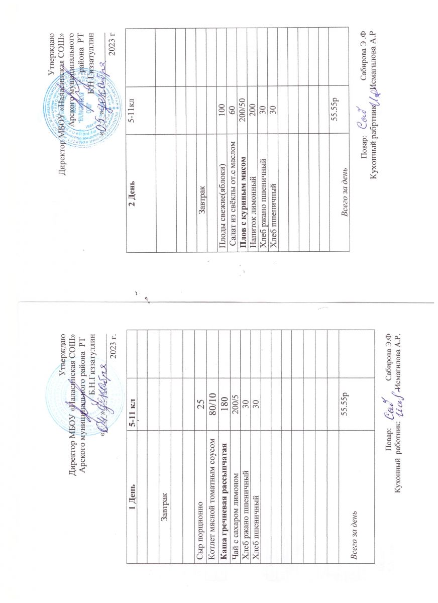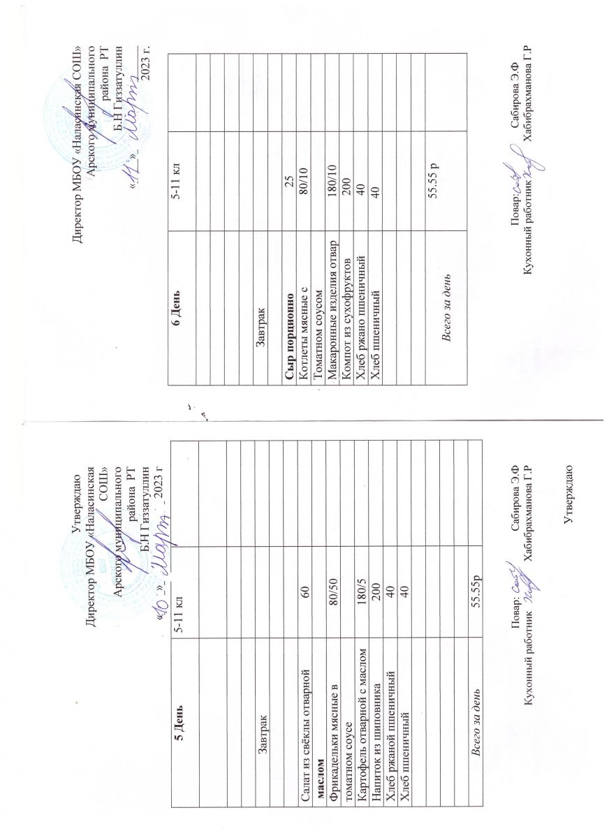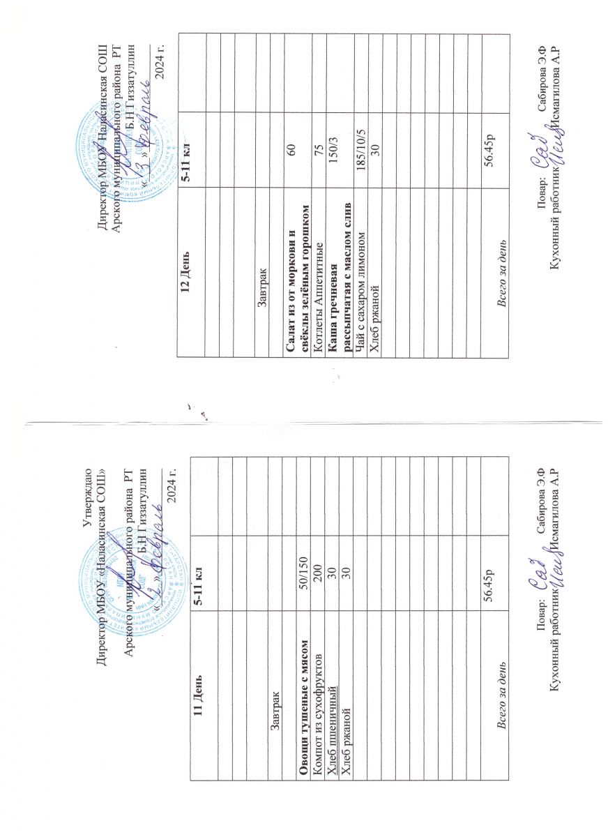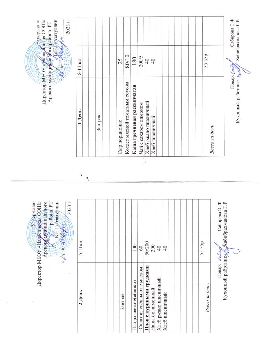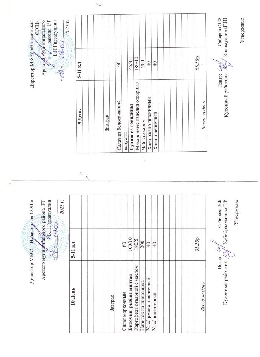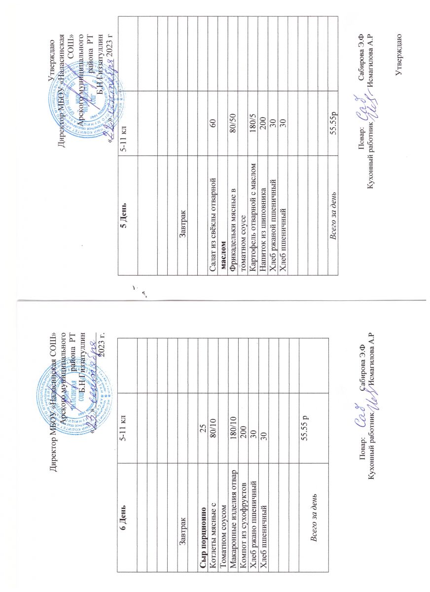 Примерное двенадцатидневное меню для учащихся 5-11 классов на 2023-2024 учебный год