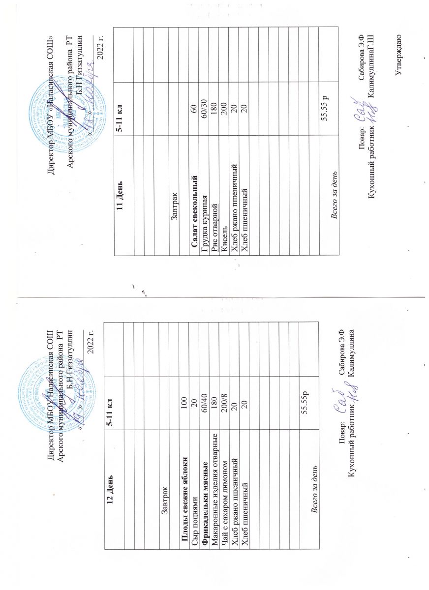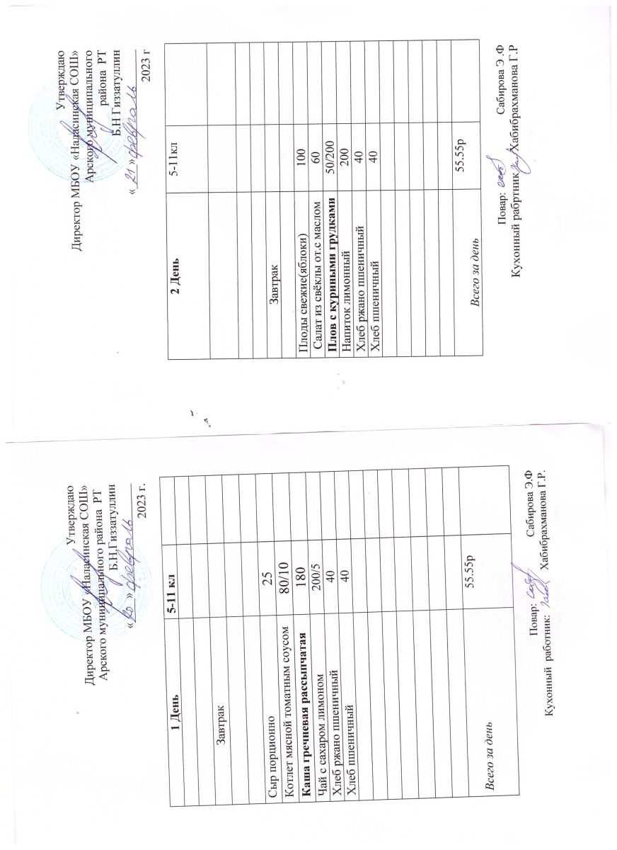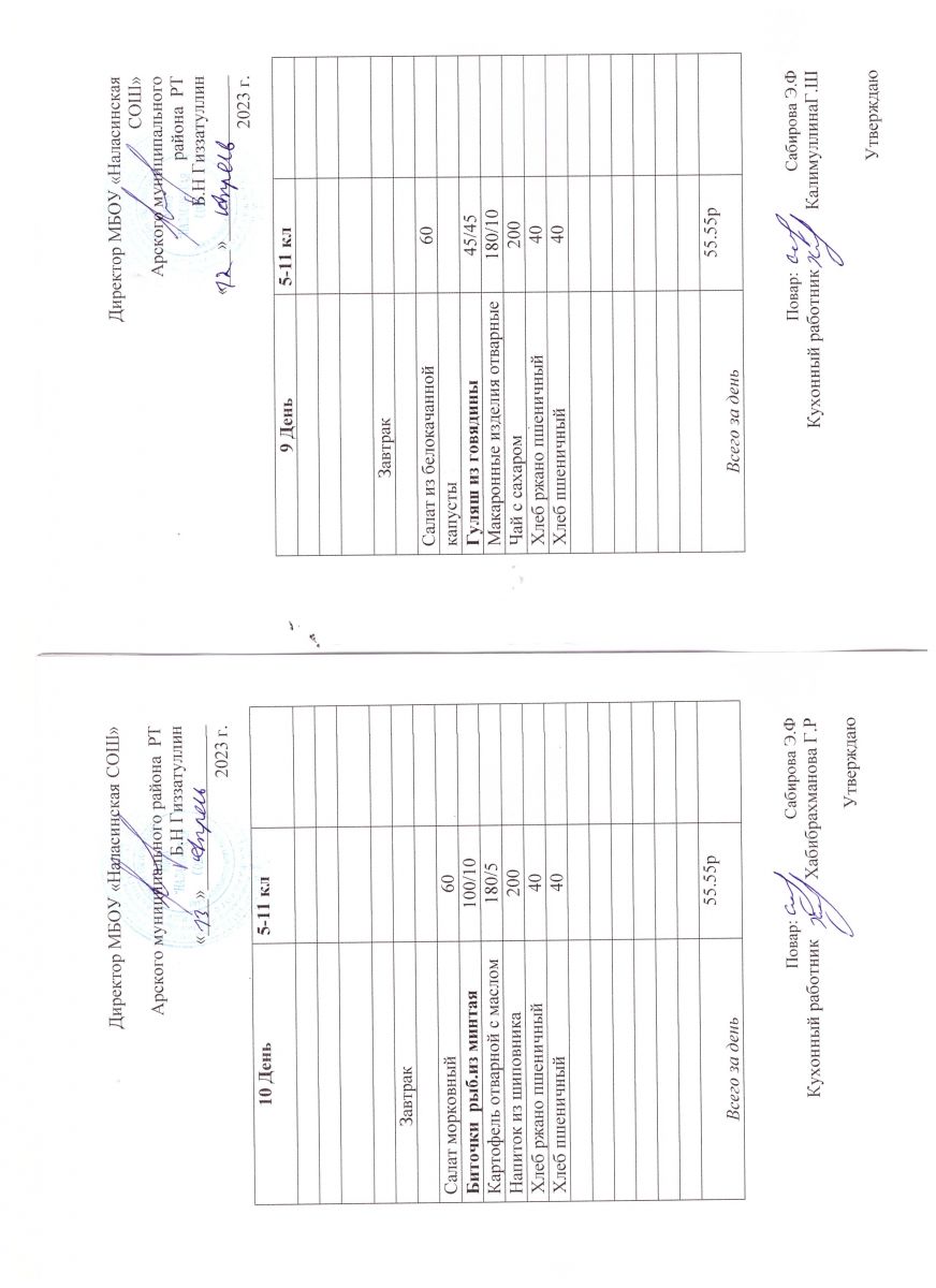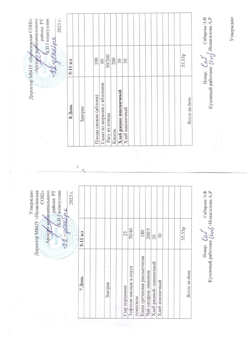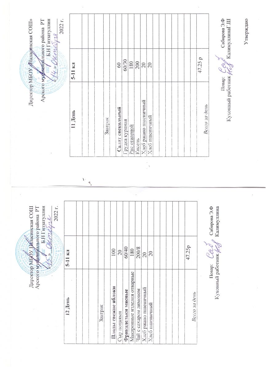 Примерное двенадцатидневное меню для учащихся 5-11 классов на 2023-2024 учебный год