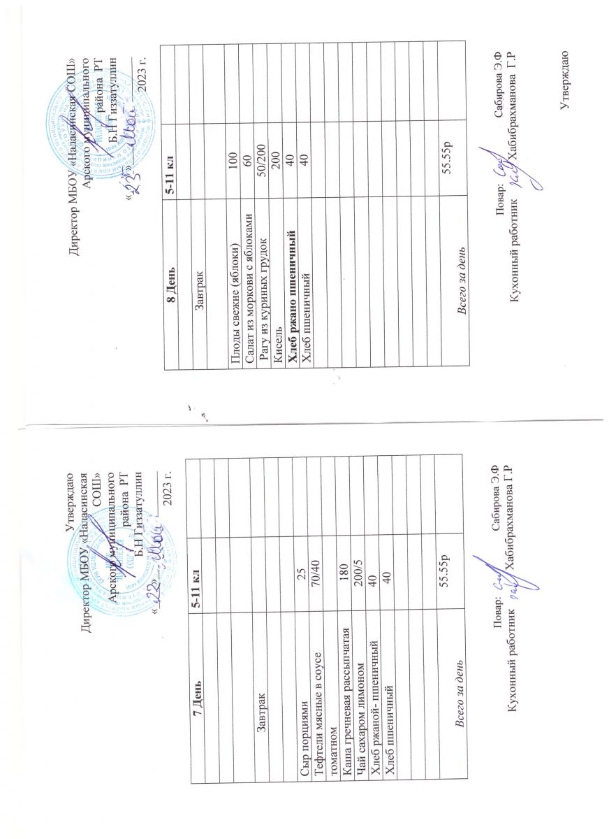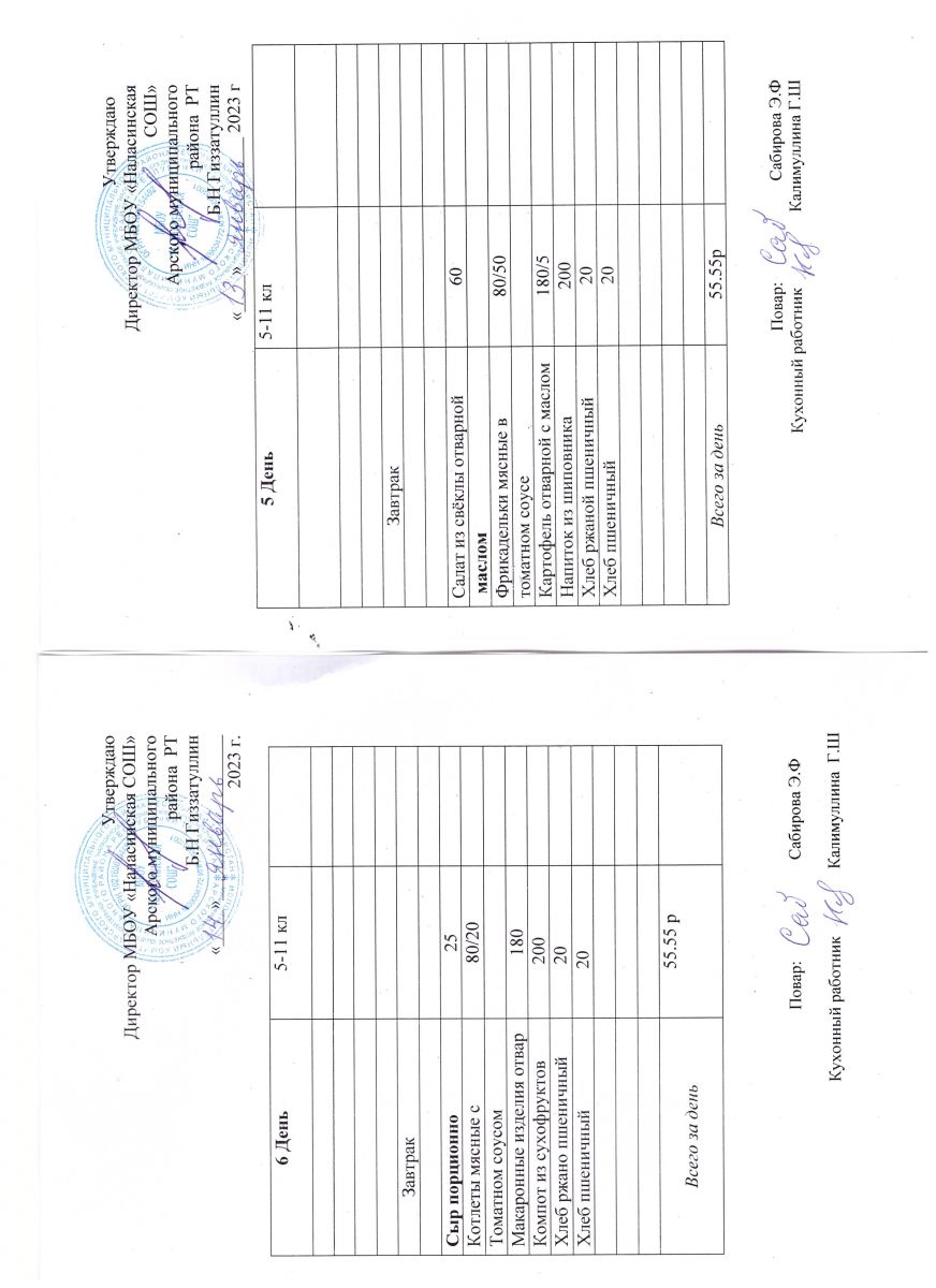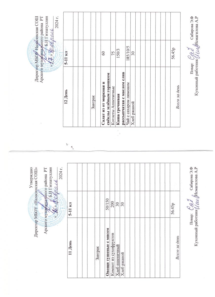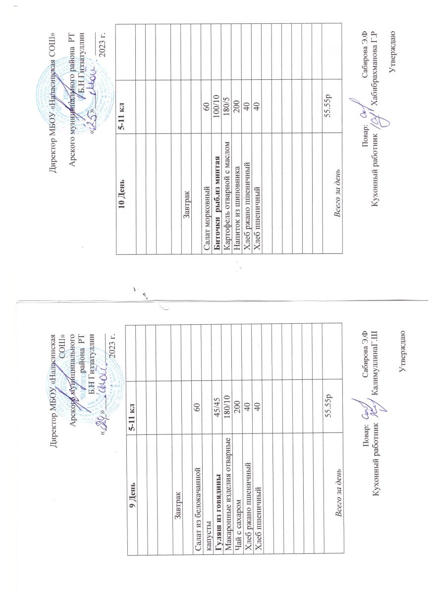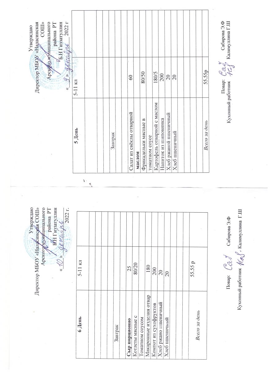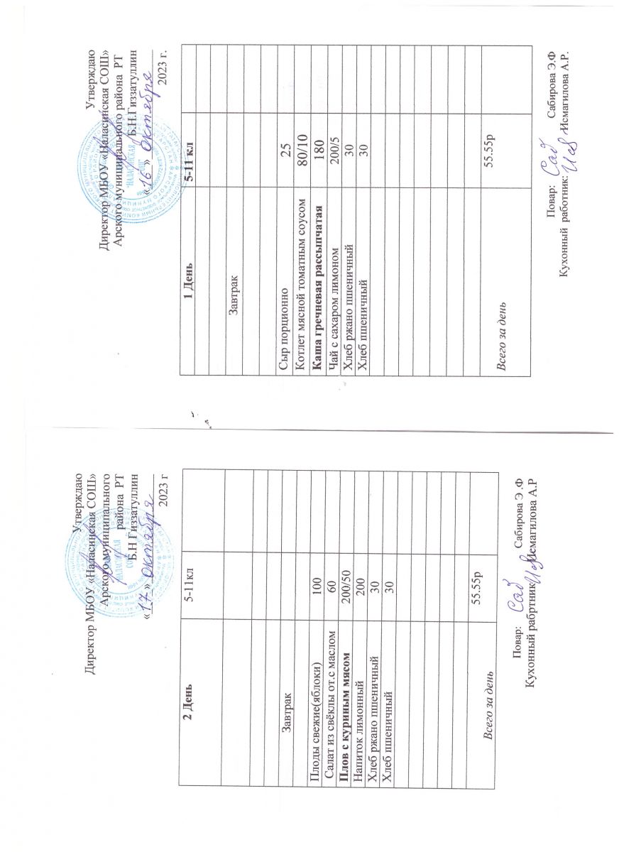 Примерное двенадцатидневное меню для учащихся 5-11 классов на 2023-2024 учебный год