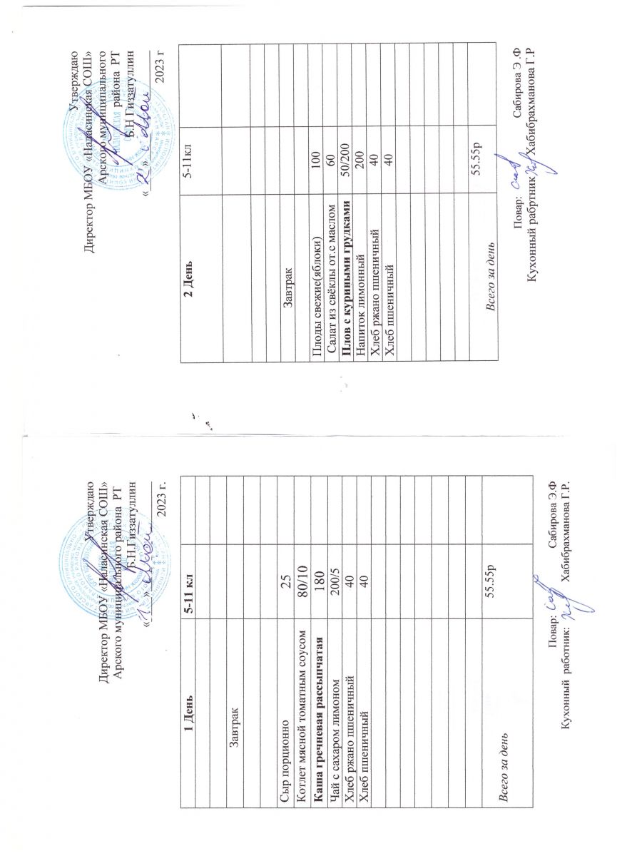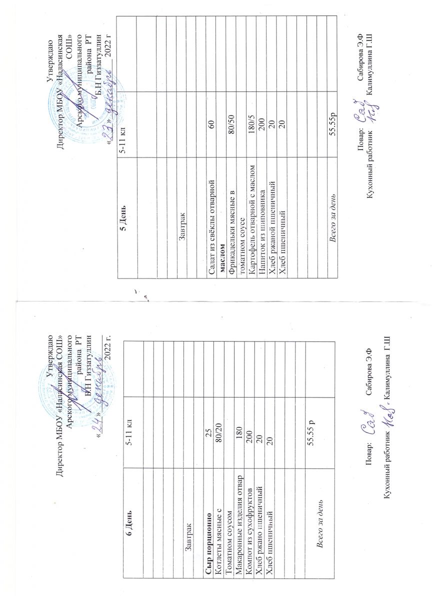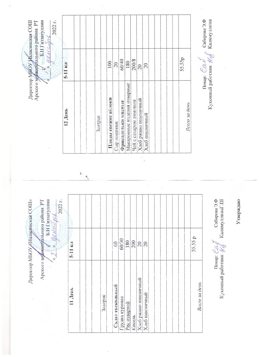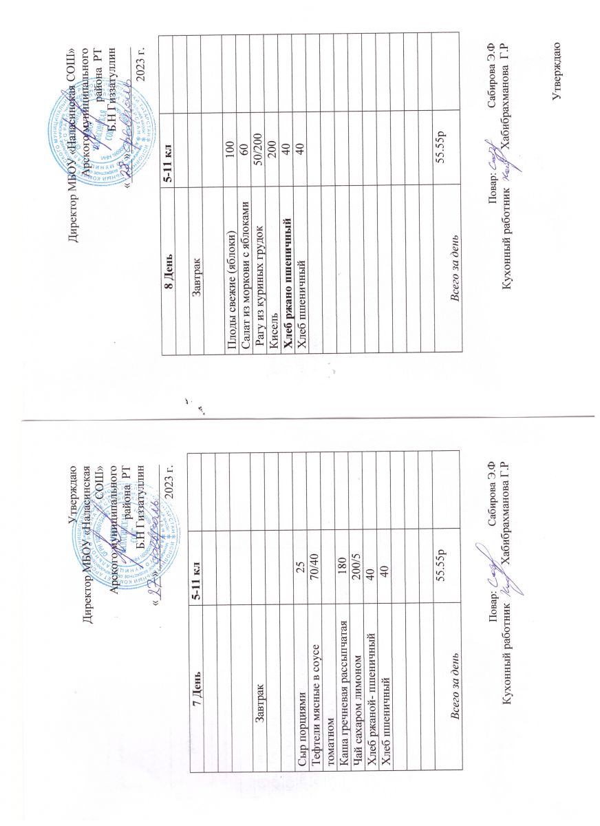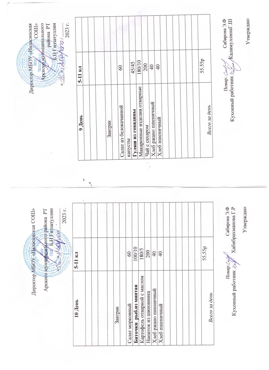 Примерное двенадцатидневное меню для учащихся 5-11 классов на 2023-2024 учебный год