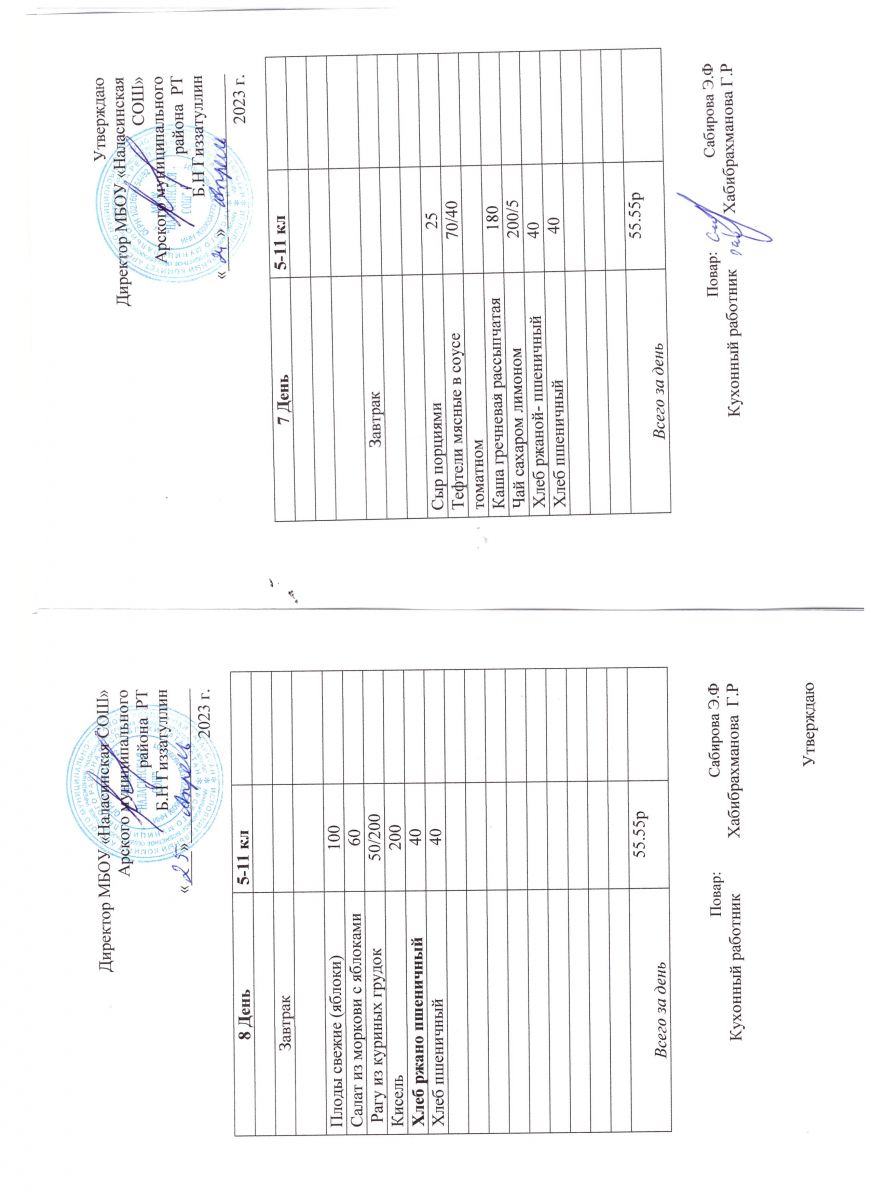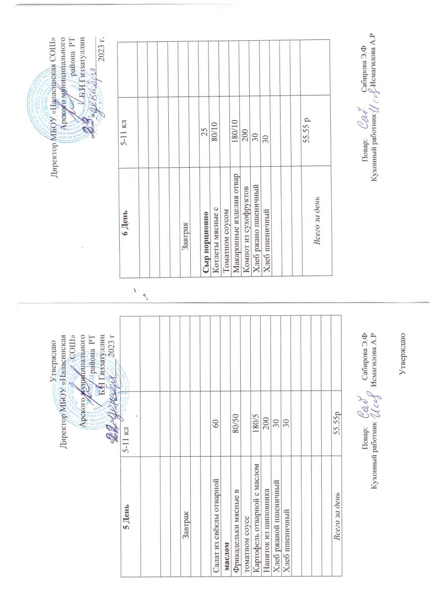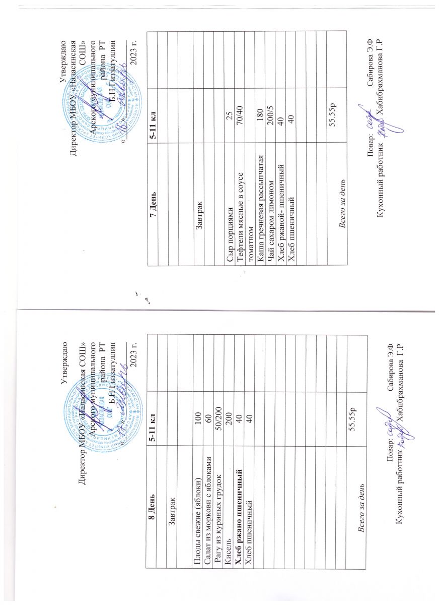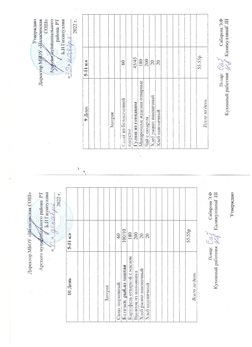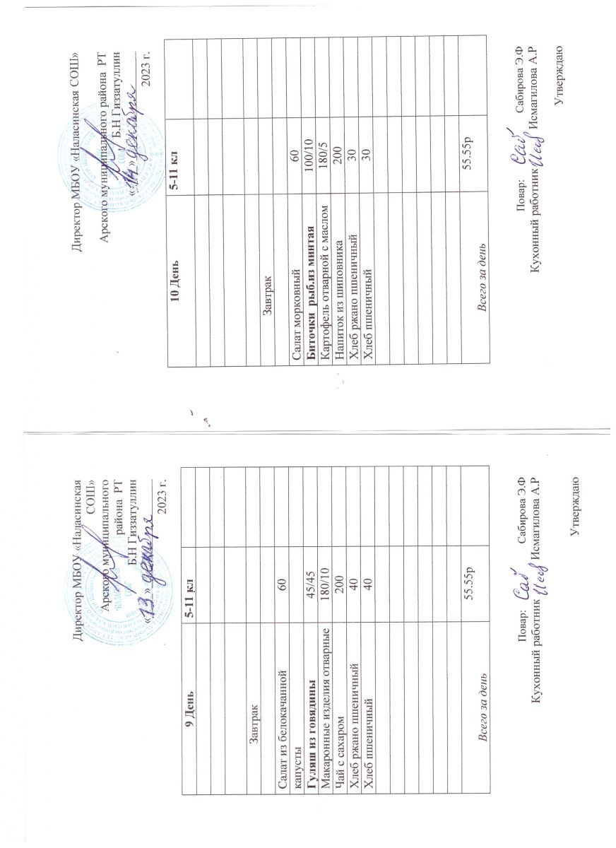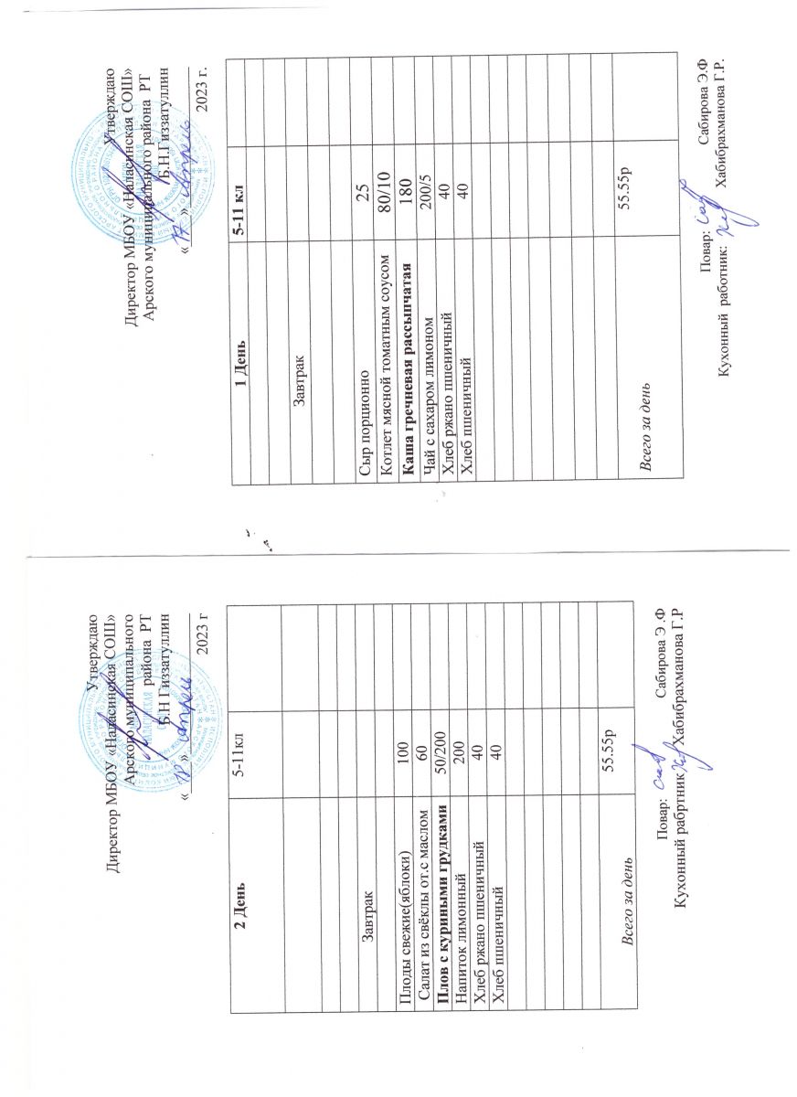Примерное двенадцатидневное меню для учащихся 5-11 классов на 2023-2024 учебный год