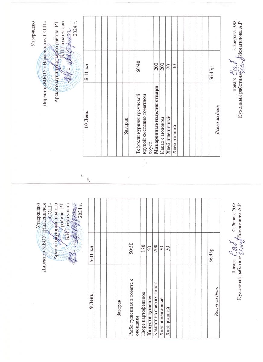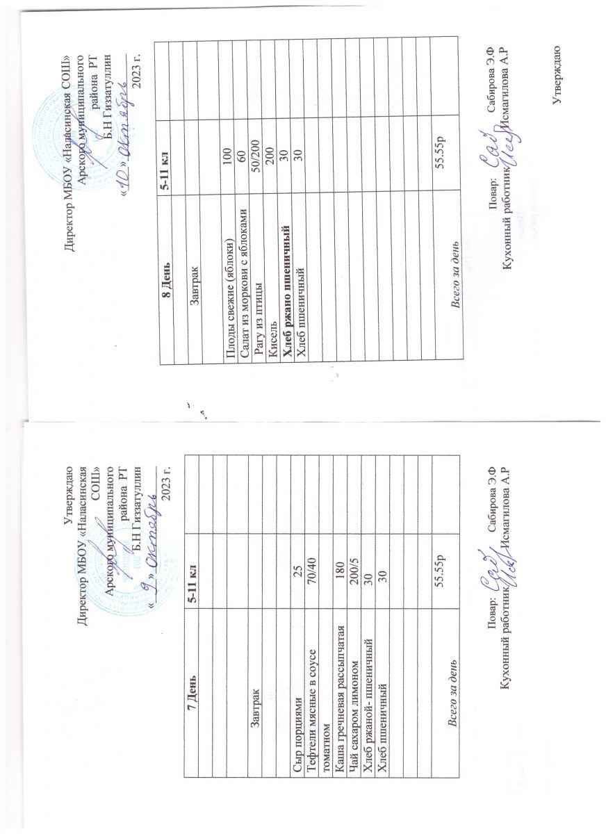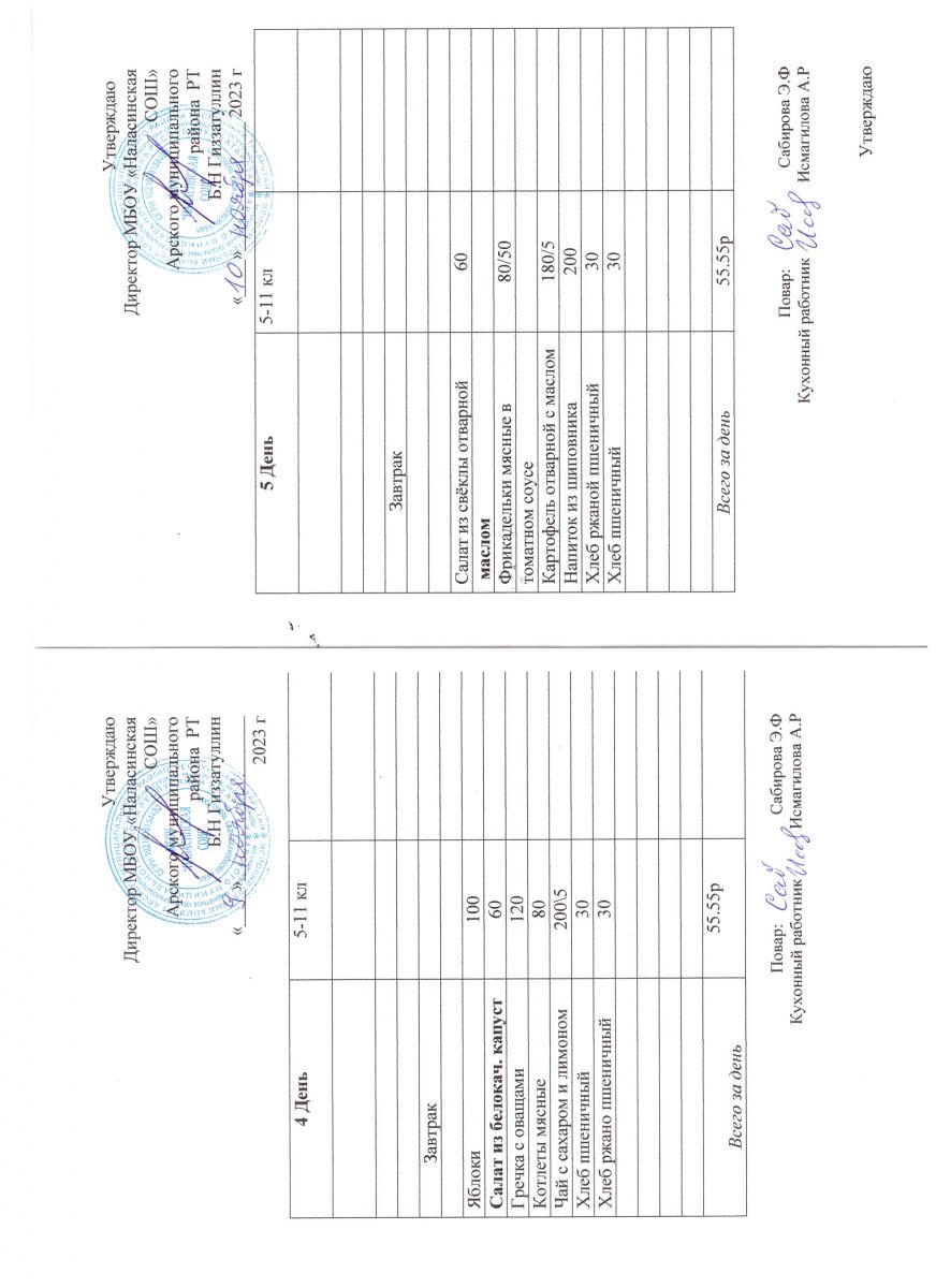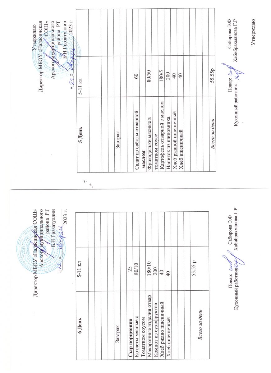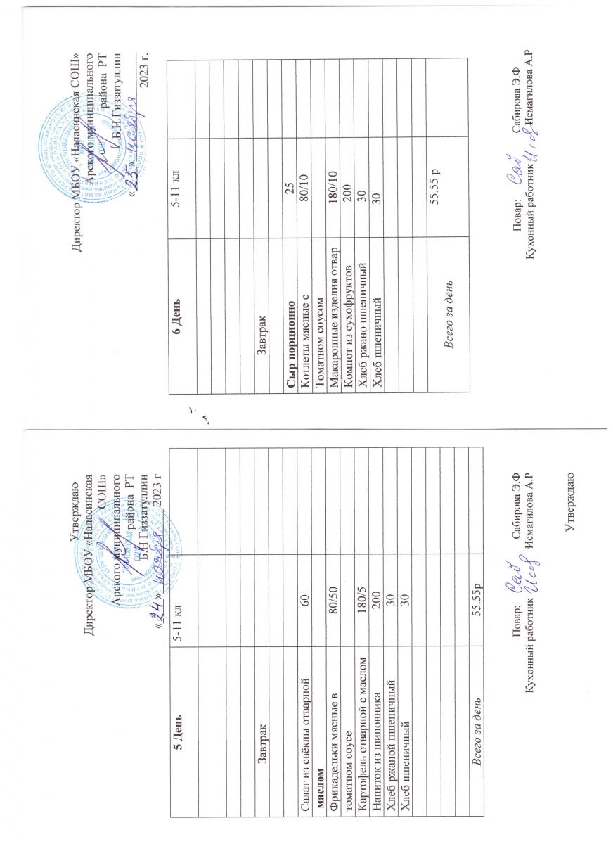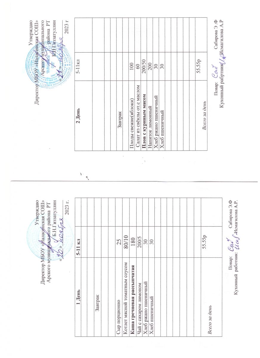 Примерное двенадцатидневное меню для учащихся 5-11 классов на 2023-2024 учебный год
