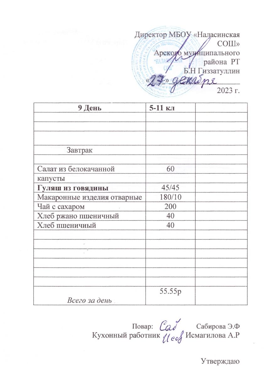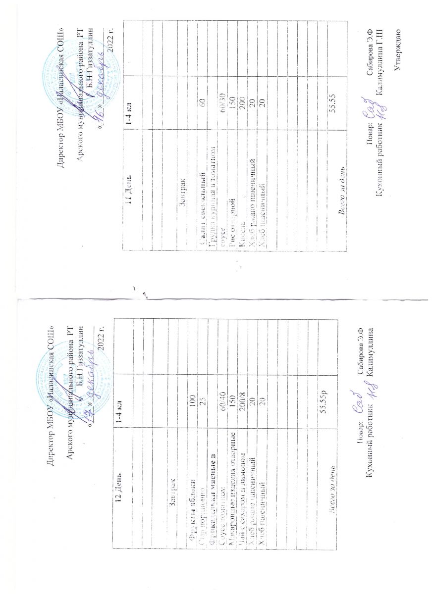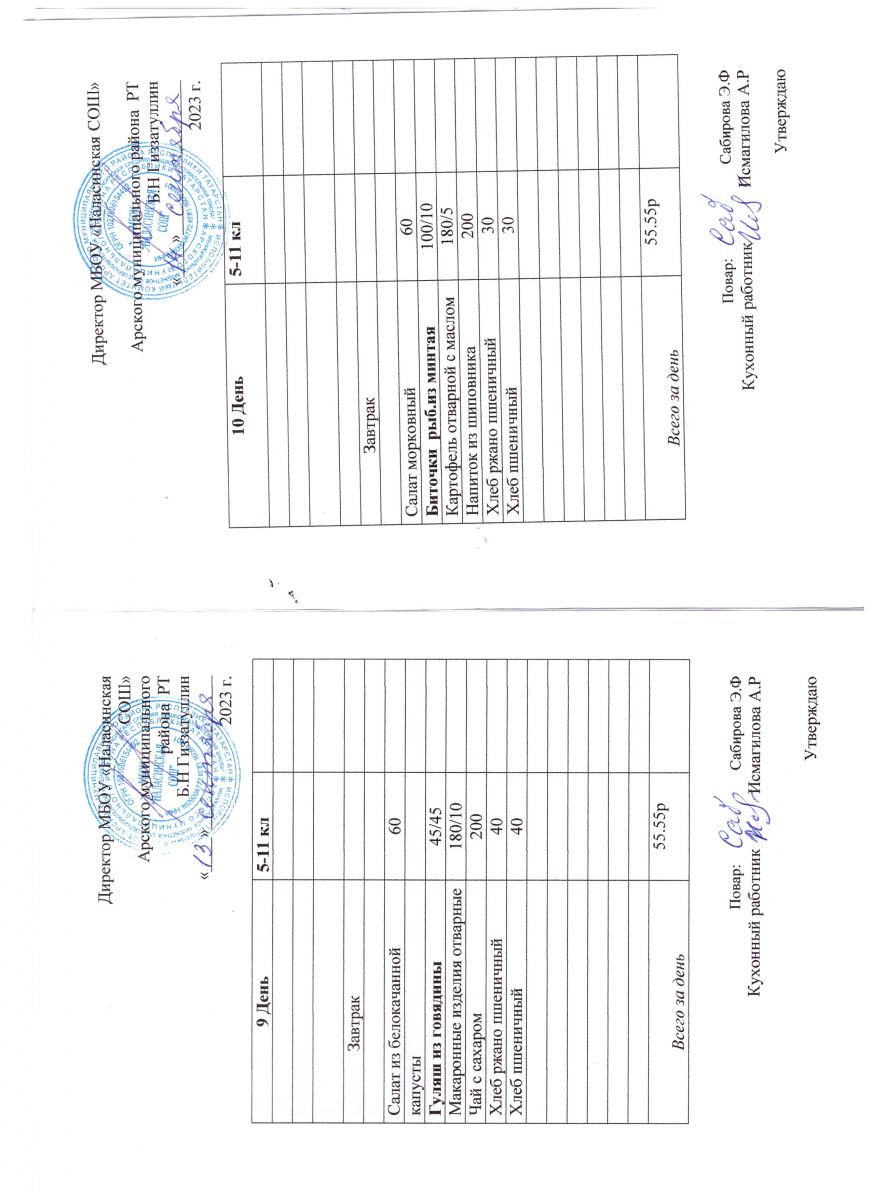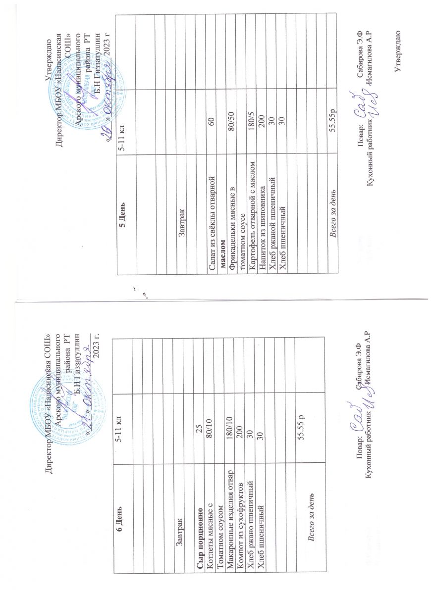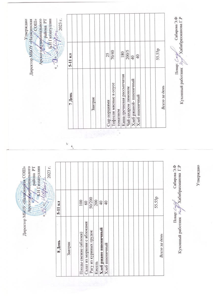 Примерное двенадцатидневное меню для учащихся 5-11 классов на 2023-2024 учебный год