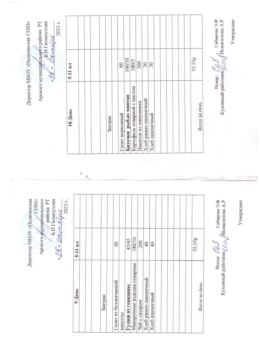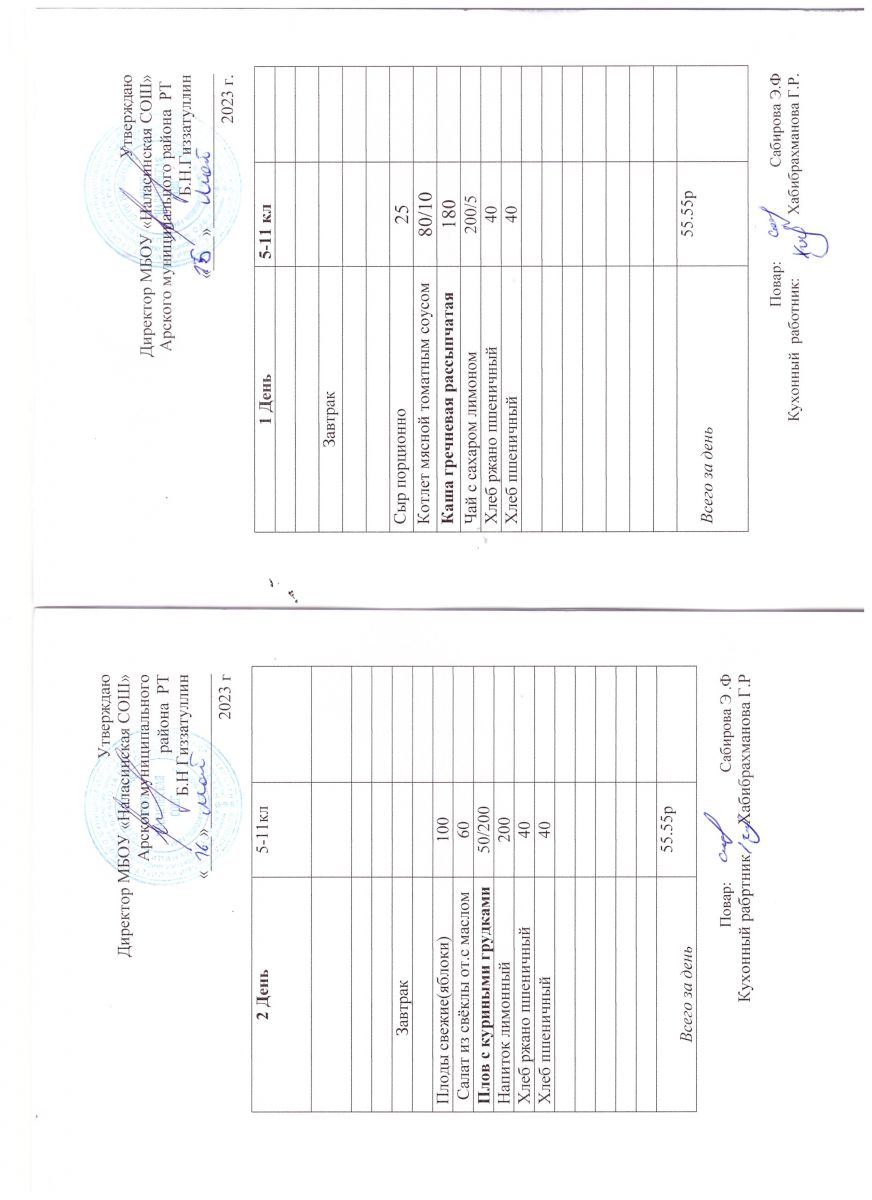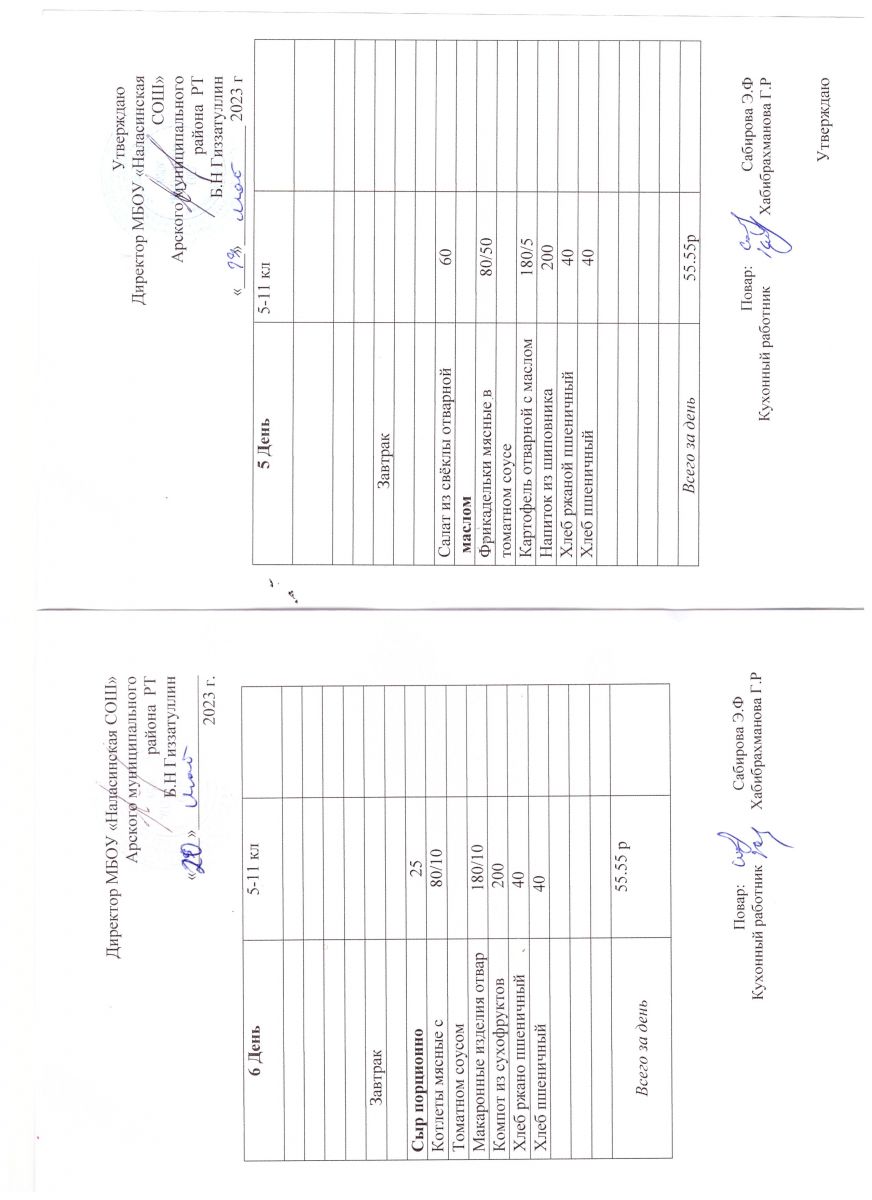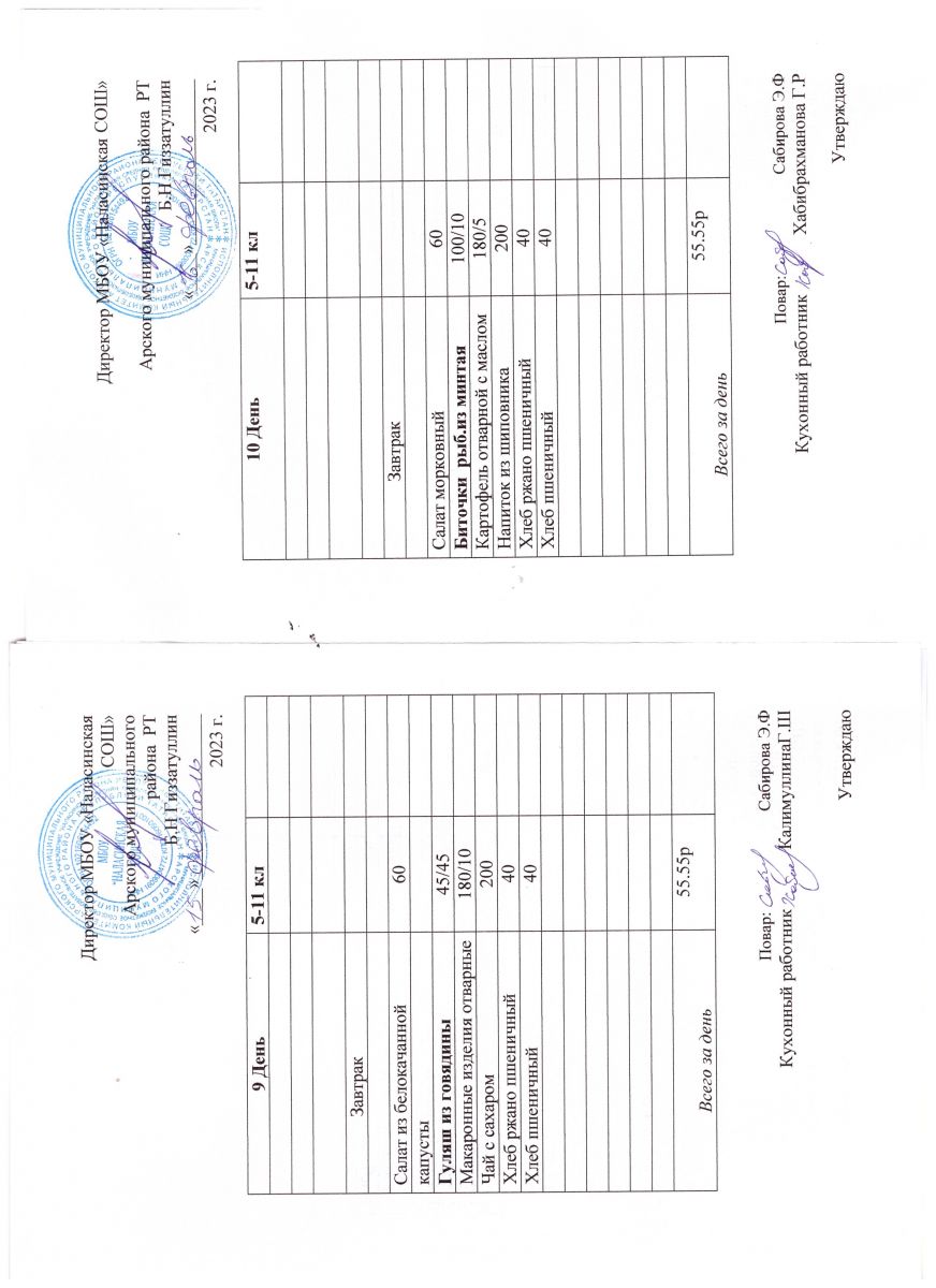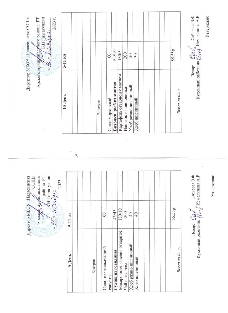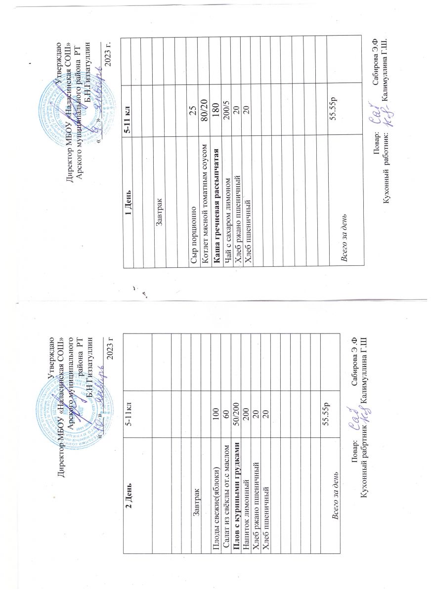 Примерное двенадцатидневное меню для учащихся 5-11 классов на 2023-2024 учебный год