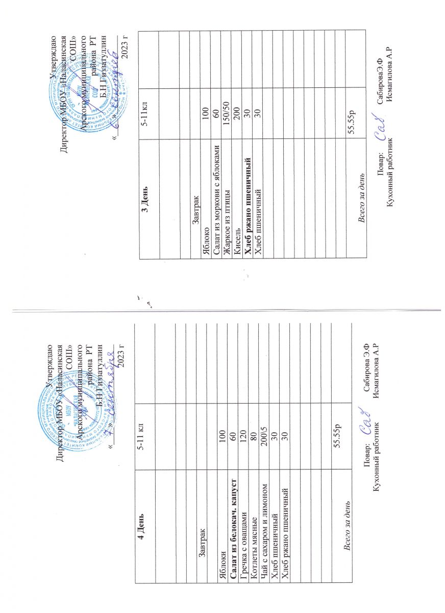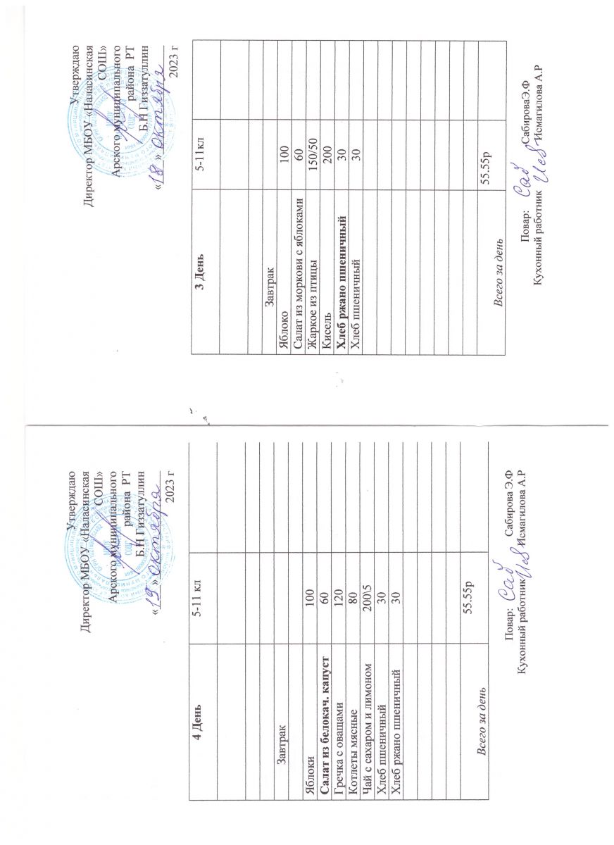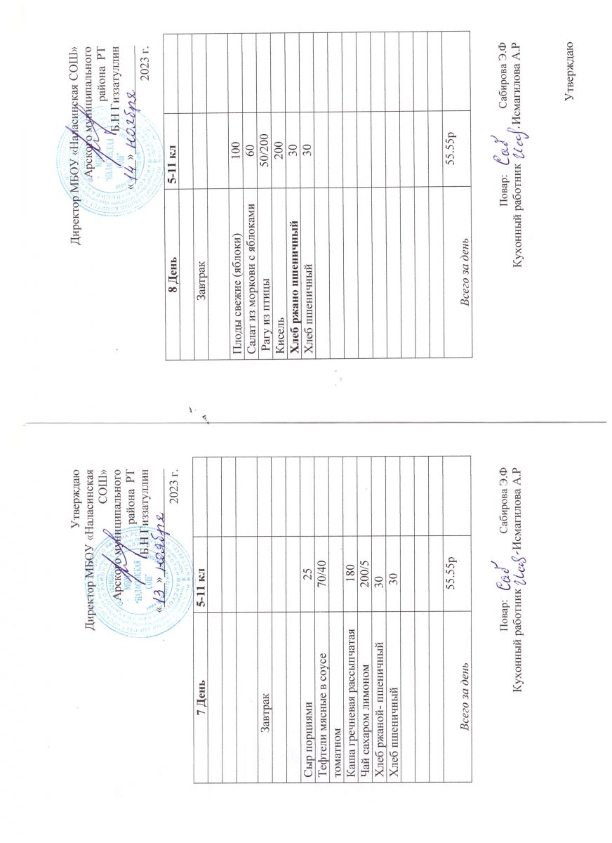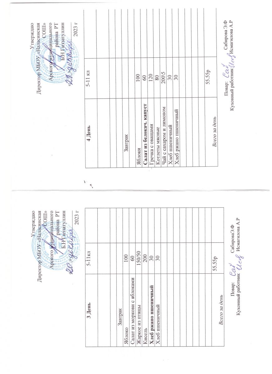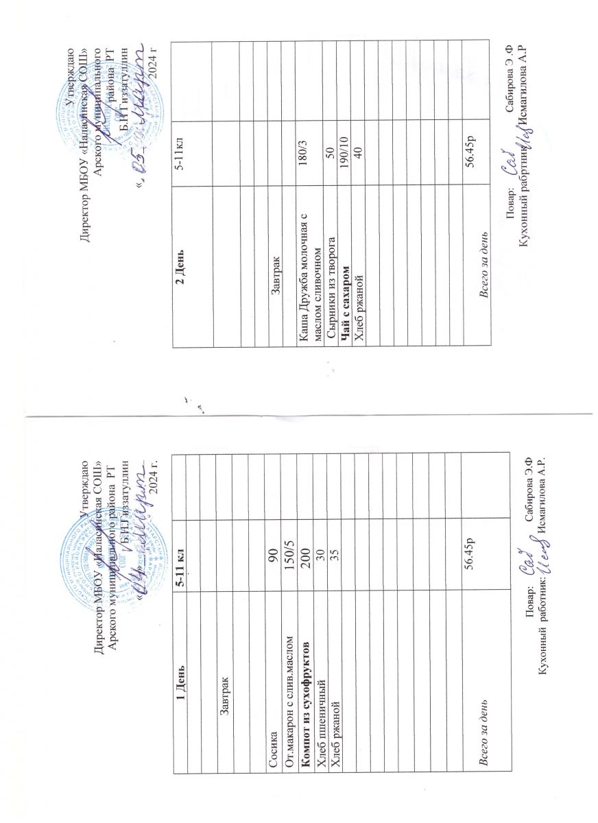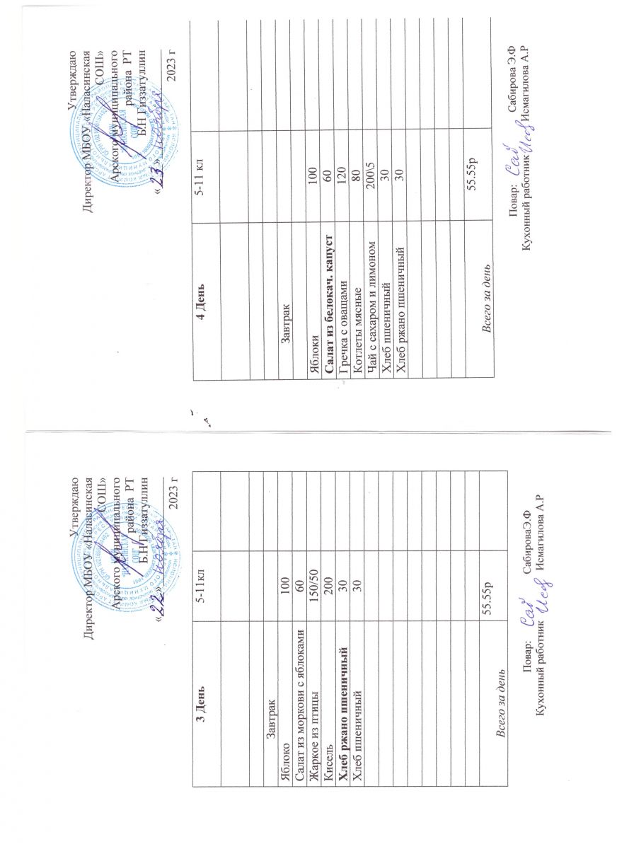 Примерное двенадцатидневное меню для учащихся 5-11 классов на 2023-2024 учебный год