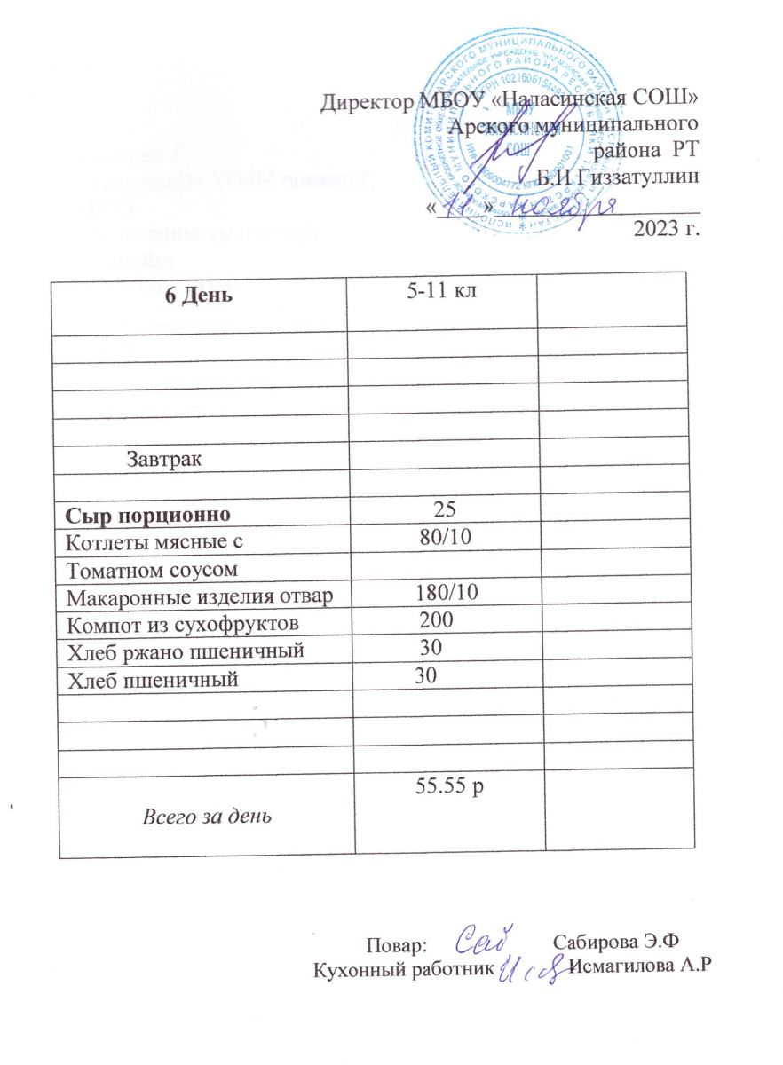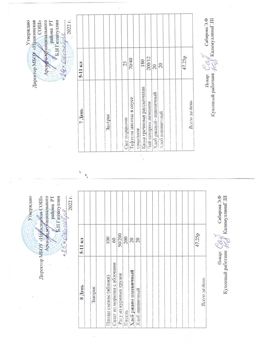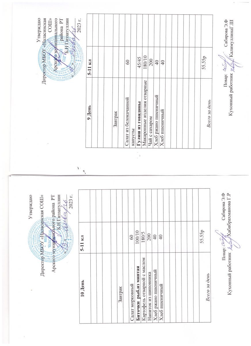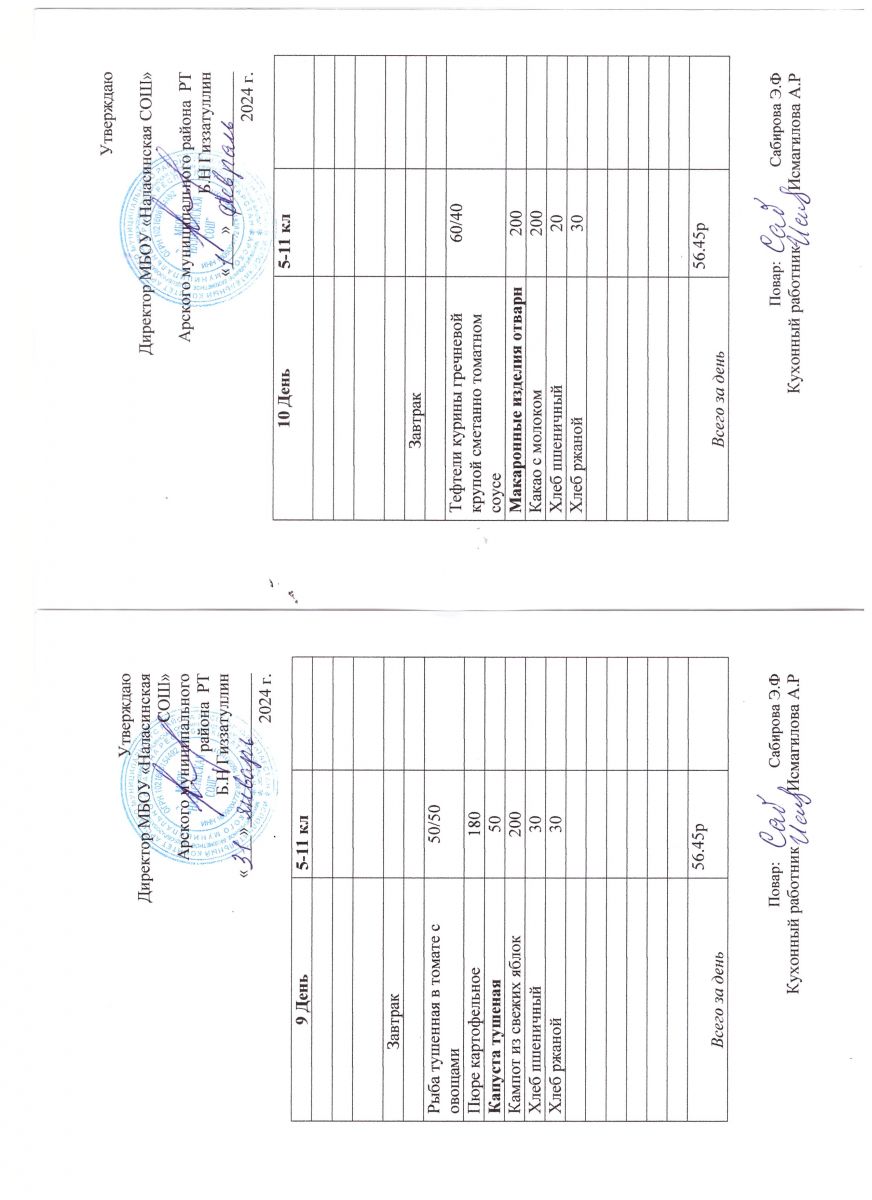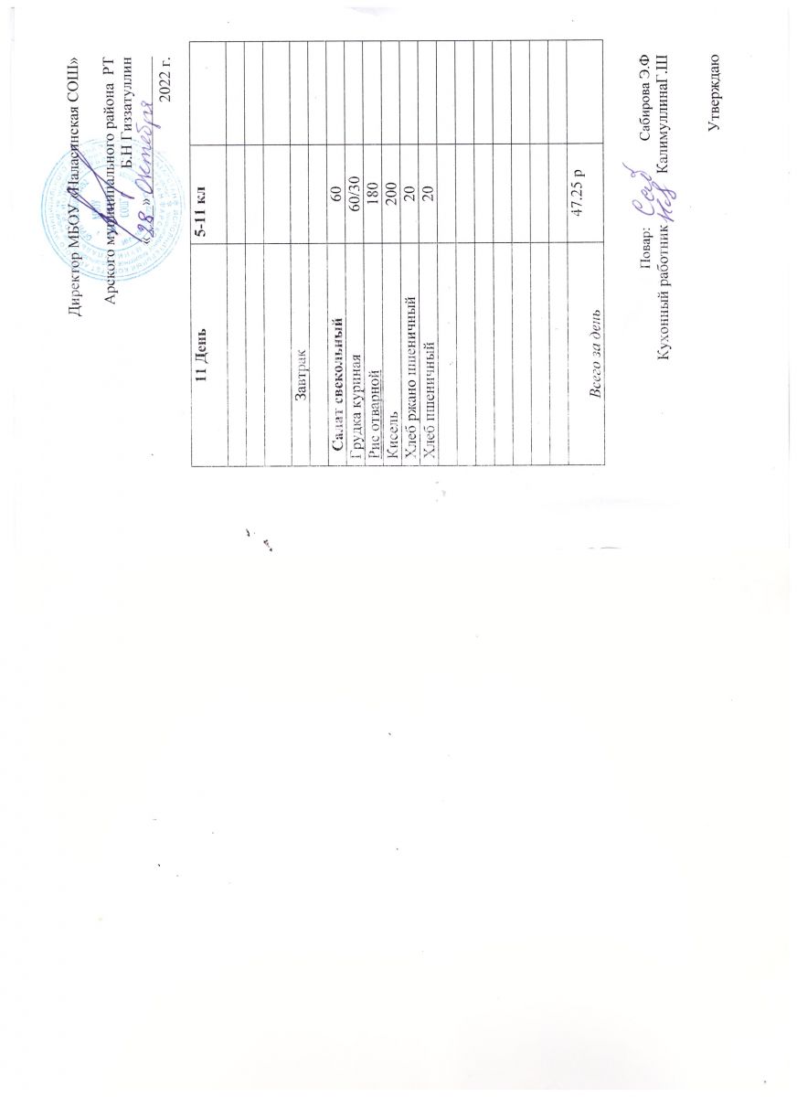 Примерное двенадцатидневное меню для учащихся 5-11 классов на 2023-2024 учебный год