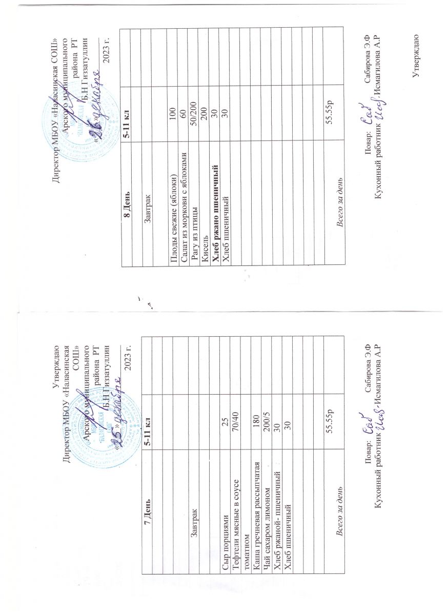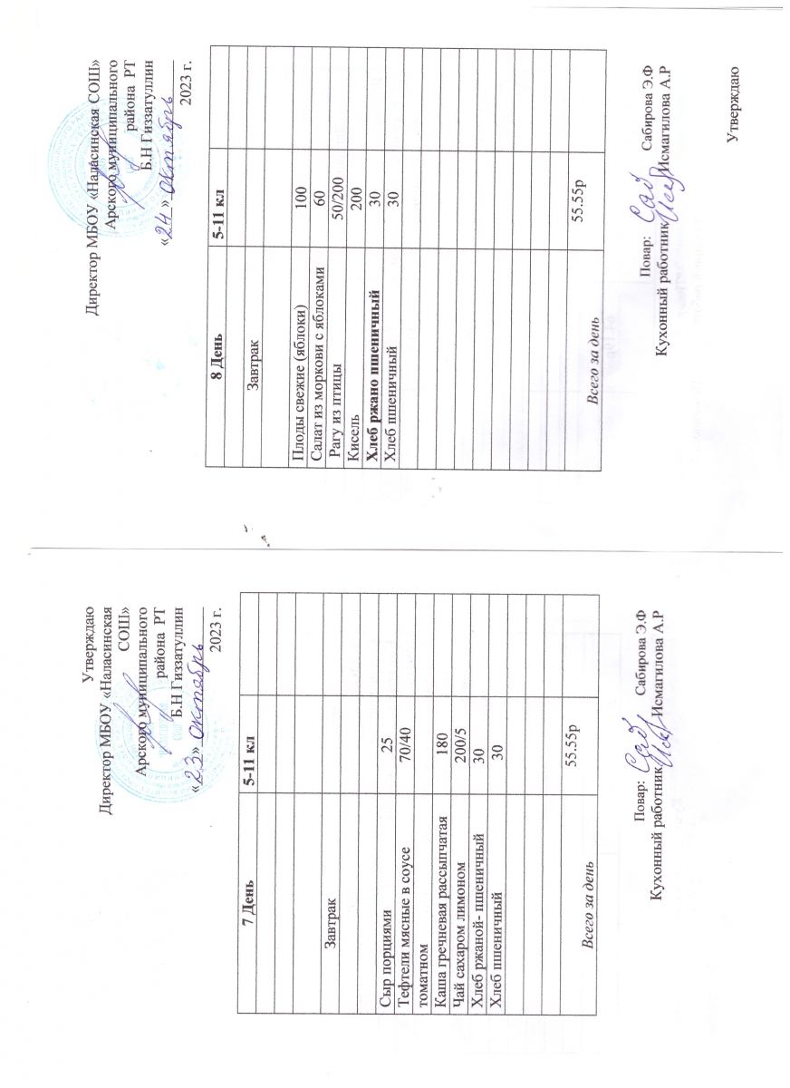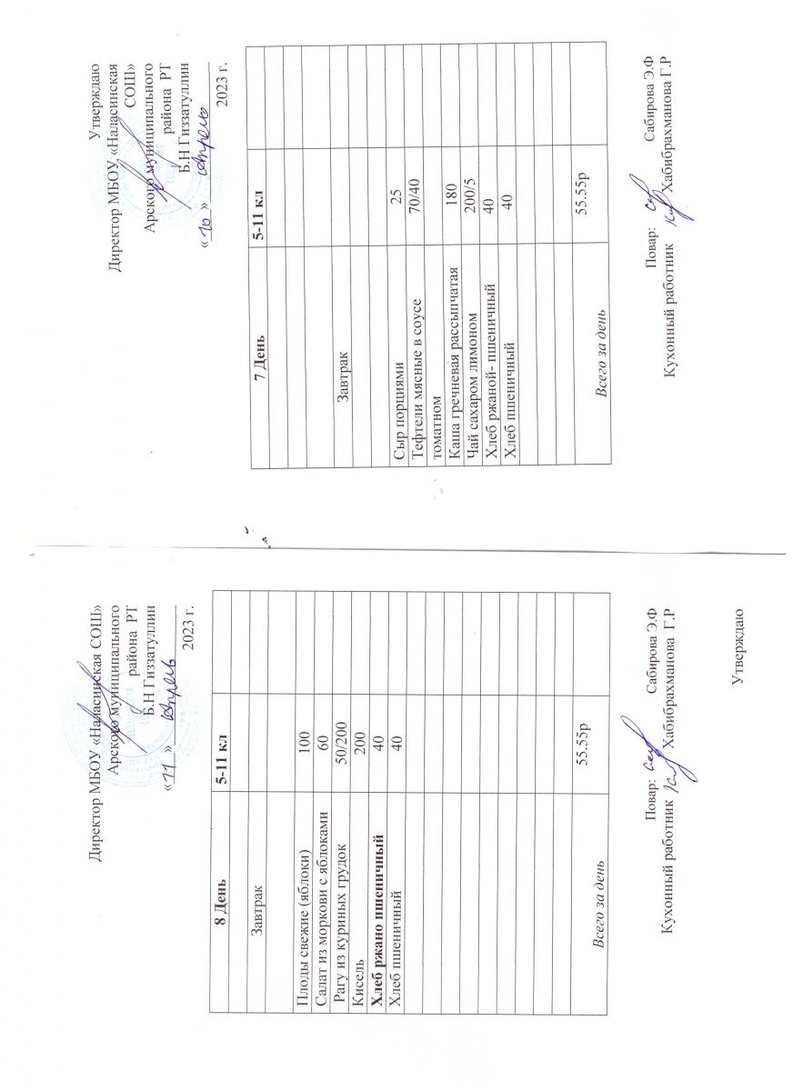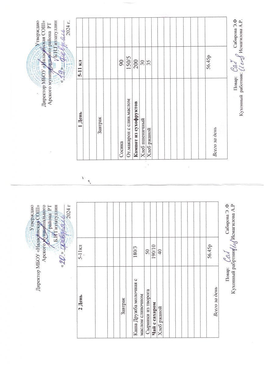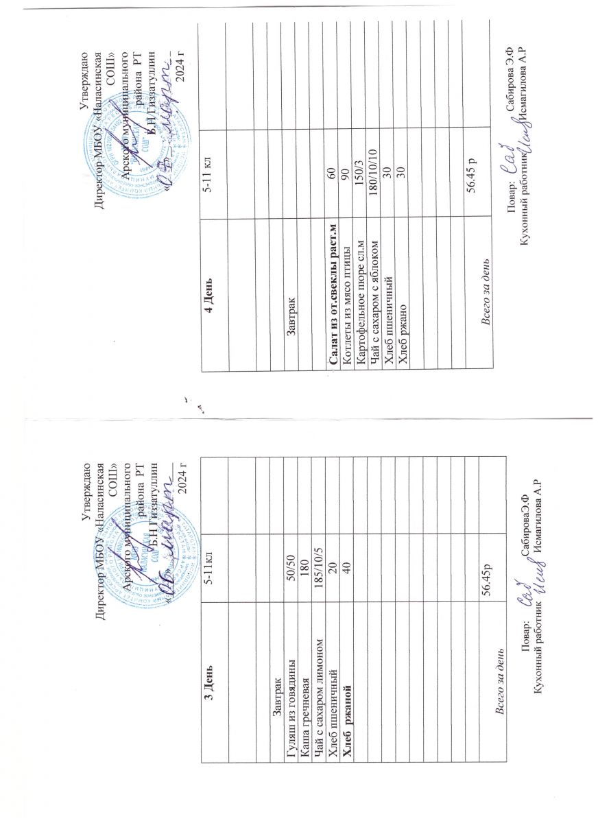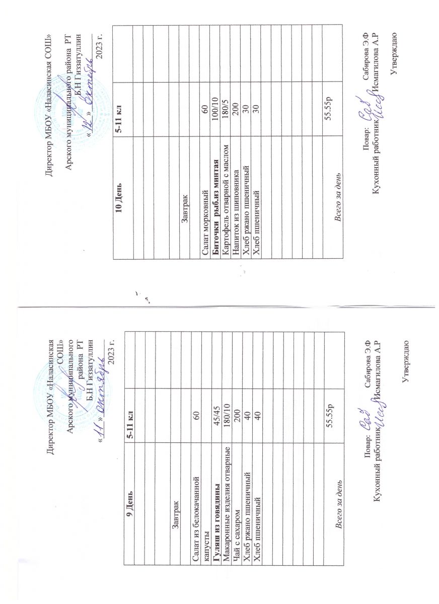 Примерное двенадцатидневное меню для учащихся 5-11 классов на 2023-2024 учебный год