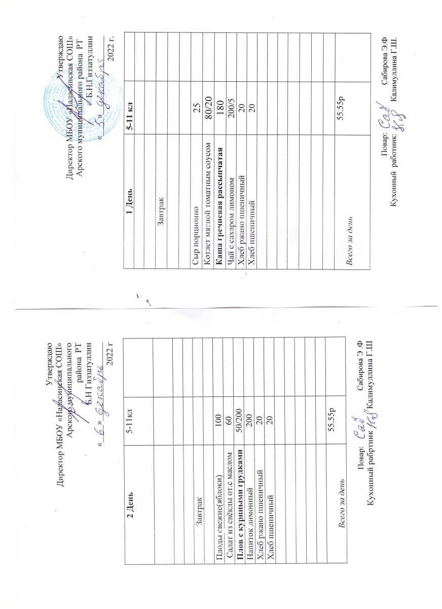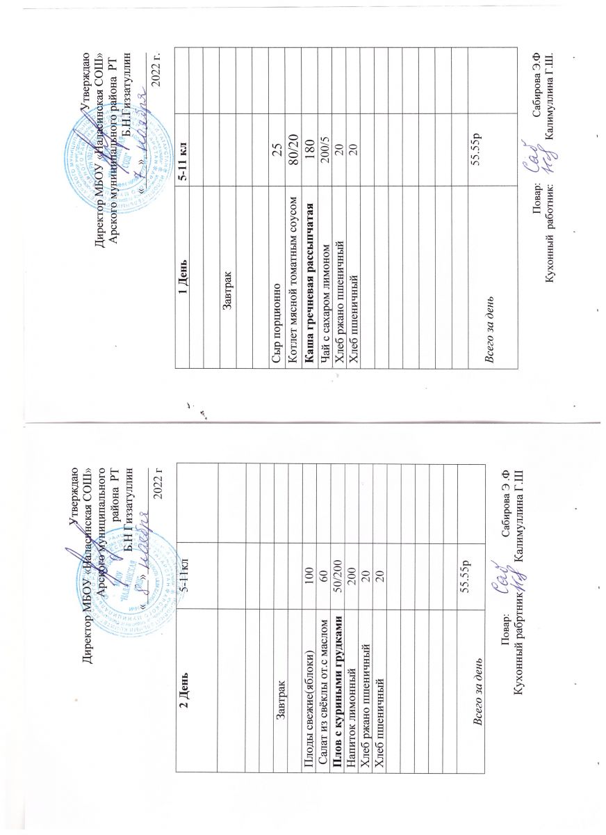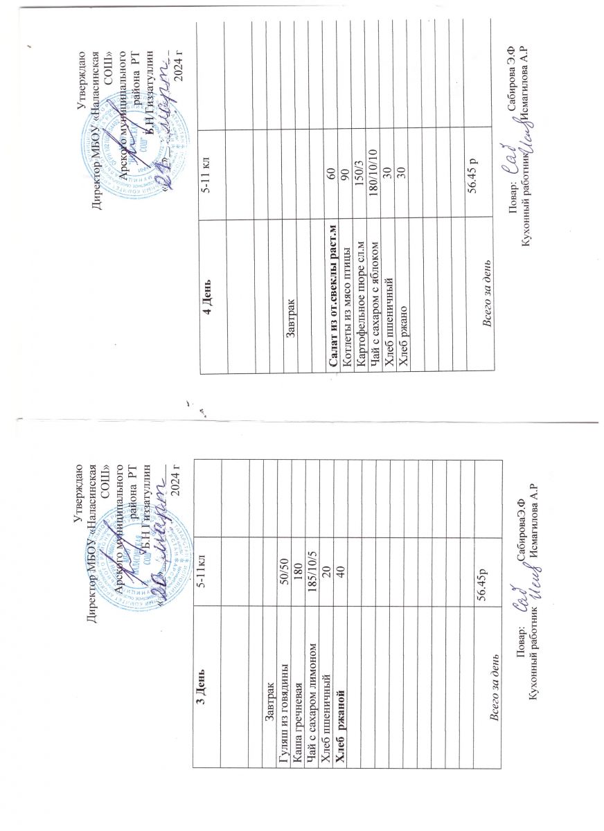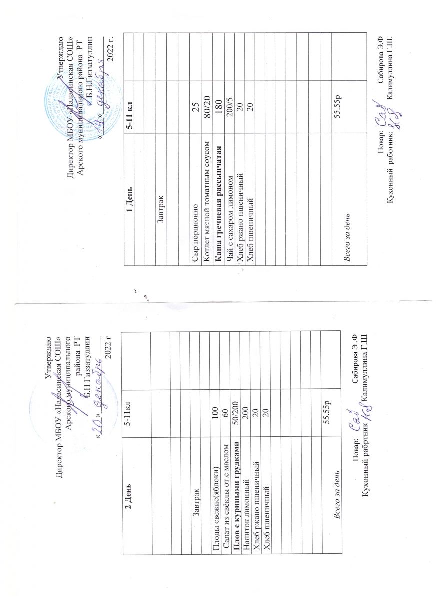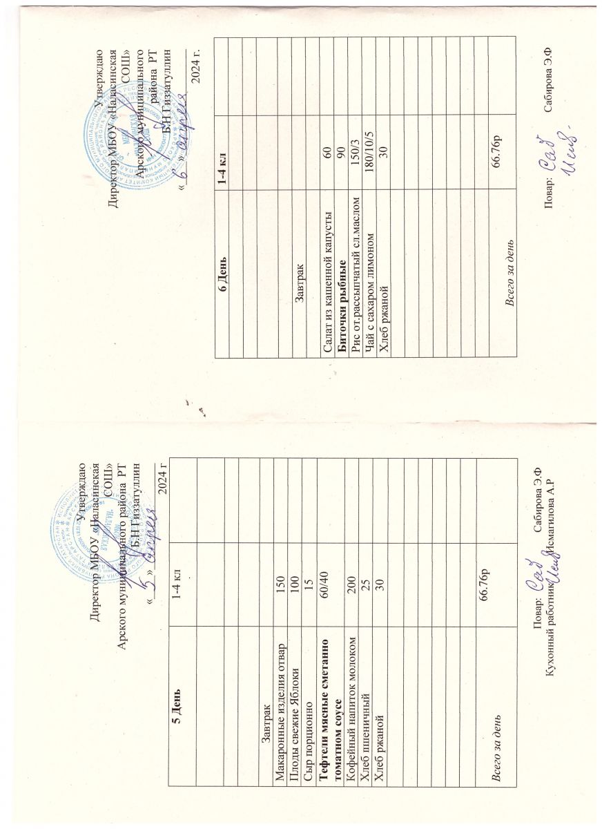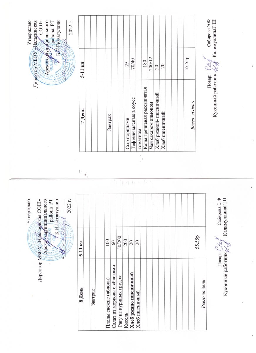 Примерное двенадцатидневное меню для учащихся 5-11 классов на 2023-2024 учебный год
