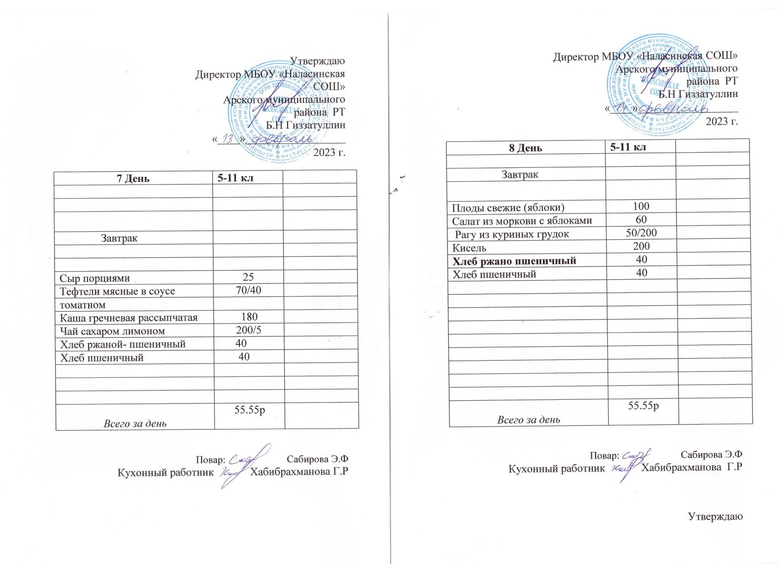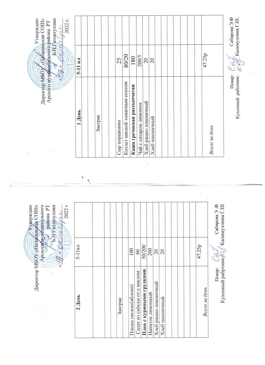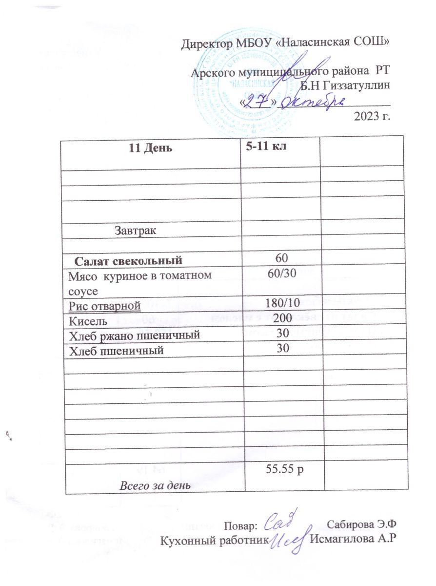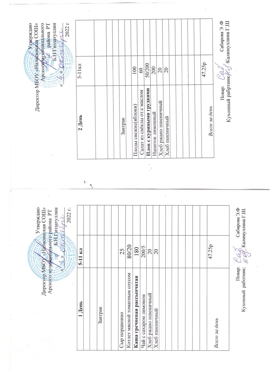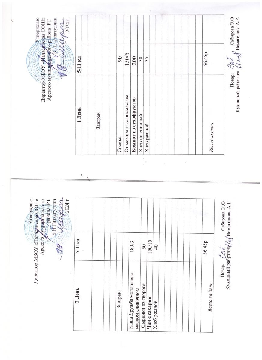 Примерное двенадцатидневное меню для учащихся 5-11 классов на 2023-2024 учебный год