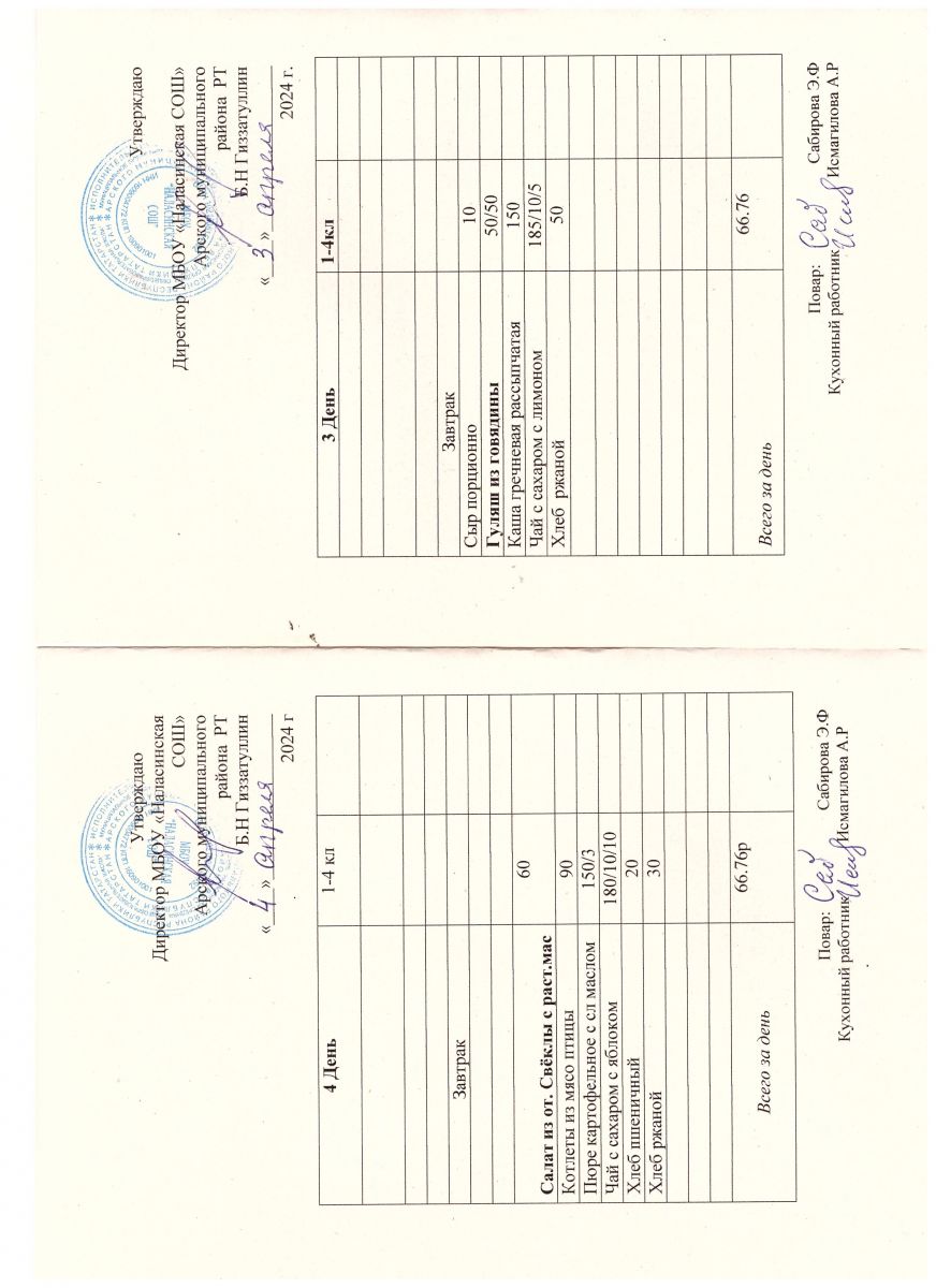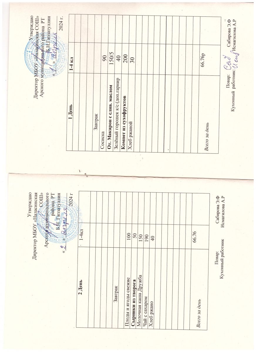Примерное двенадцатидневное меню для учащихся 1-4 классов на 2023-2024 учебный год