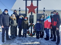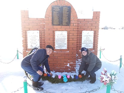 Носы мәктәбе укучылары «Геройлар истәлеген саклыйбыз» акциясенә кушылып, Ишнарат авылында урнашкан һәйкәлгә венок куйдылар. -