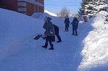 Бураннардан соң техник хезмәткәрләр, укучылар, укытучылар, мәктәптә укып чыккан егетләр белән берлектә мәктәп территориябез тәртипкә китерелде.