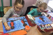 Творческая работа на тему: "Снегири" учащихся 1 класса отделения изобразительное искусство+английский язык, преподаватели Каримова А.А., Галимжанова А.Р., Котдусова Г.Ф.