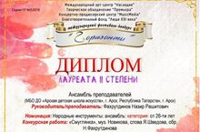 "Фольклор композициясе" номинациясендә "Бәллүр" коллективы (укытучысы Кочурова З.Г.) II дәрәҗә лауреат;