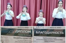 Поздравляем ансамбль кураистов (преподаватель Исмагилова А.А.) Детской школы искусств с дипломом лауреата III степени в Международном конкурсе исполнителей на народных инструментах "MUSICA DEL MONDO" в г.Казань. Молодцы!