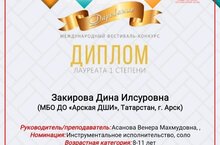 Мухамедьярова Диана (преп. Рахматуллина Э.Ф. ) - лауреат I степени