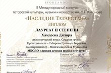 Хамдеева Диляра - II дәрәҗә лауреат (җитәкчесе Сабирова Г.Б.).