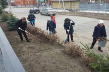 Продолжаются субботники на территории детской школы искусств.