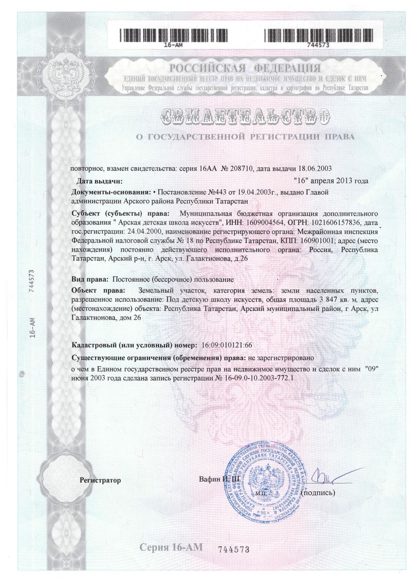 | Адрес: | 422000, РТ, г. Арск, ул. Галактионова, д. 26 |