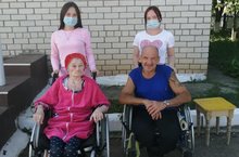 Безнең студентлар - волонтёрлар Җәләлиева Әдилә һәм Сибәгатуллина Гөлүсә Арчадагы картлар һәм инвалидлар йортына бардылар, өлкәннәрне урамда йөртеп керттеләр.