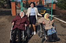 Студенты - добровольцы ГАПОУ ААПК из 22 а группы Галимова Адиля, Денисова Аня посетили Дом престарелых и инвалидов г. Арск и вывезли на прогулку пожилых.