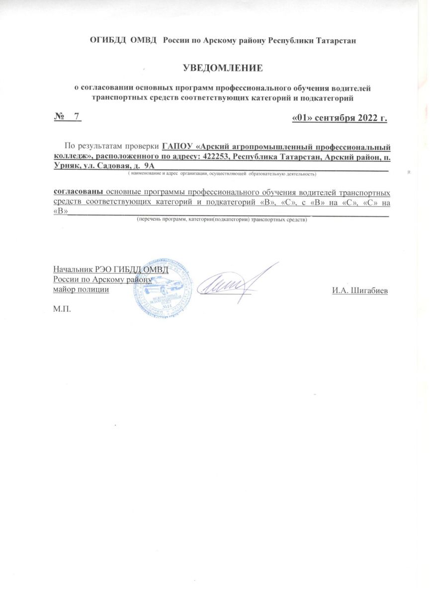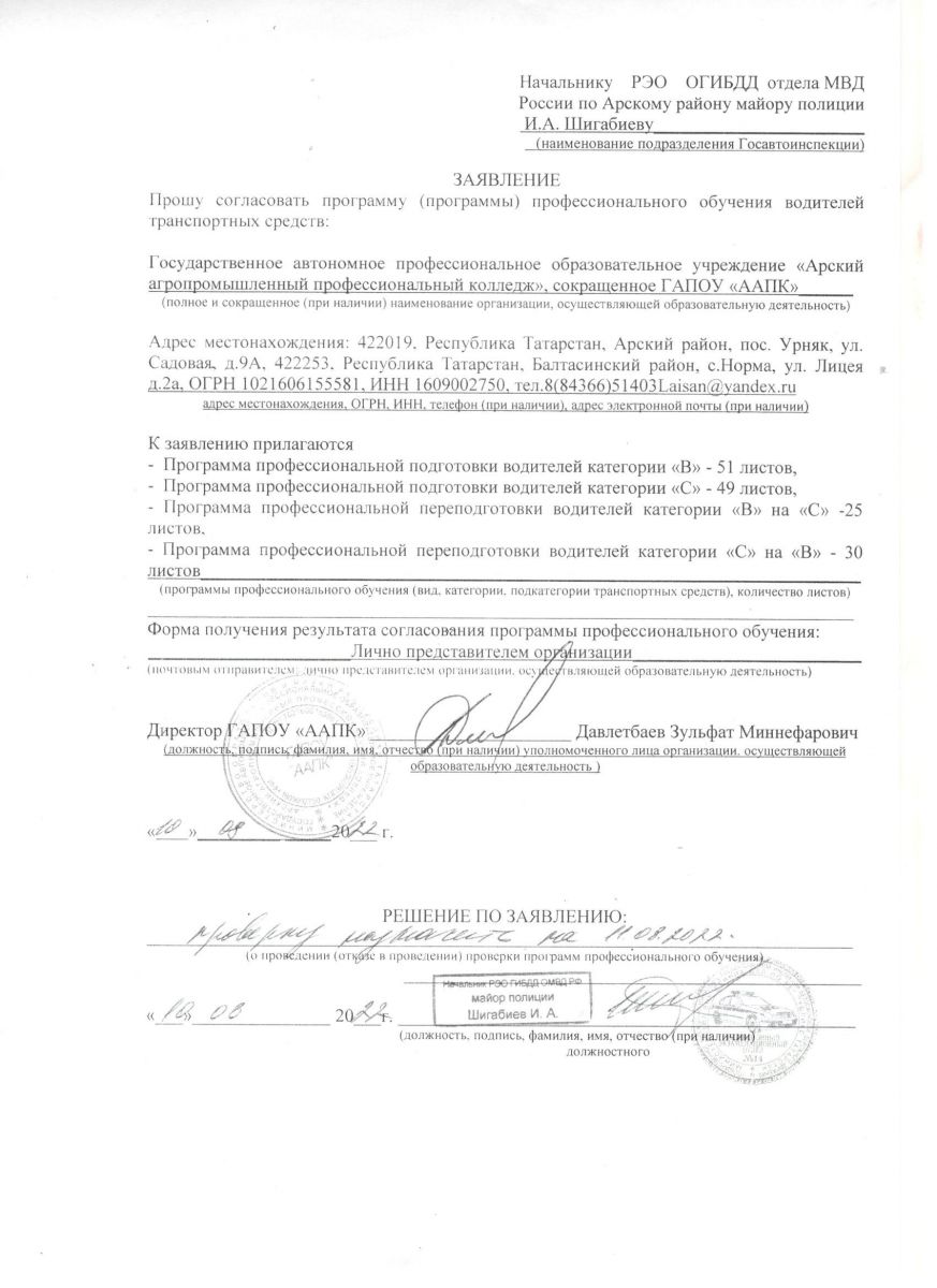 Заявление о согласовании программы профессионального обучения водителей транспортных средств