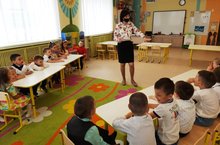 Тәрбиячеләр урта төркем балалары белән уен-викторина үткәрделәр. Катнашучылар игътибарына төрле викториналар тәкъдим ителде: "Әкиятләрне беләсеңме?", "Уйла һәм әйт"," Бер сүз белән ата"," “Табышмакларга җавап бир", Юл йөрү кагыйдәләрен белү. Сорау-җавап, балаларның хис-тойгыларын үстерү, мимика һәм жест ярдәмендә эмоциональ халәтне тапшыру күнекмәләрен үстерү, "Картинаны җый".Әлеге чара балаларны актив аралашырга һәм уеннарда катнашырга этәрә. Балаларның игътибарын, логик фикерләвен, төрле фикер йөртүуен үстерүгә ярдәм итә/Воспитатели с детьми средней группы провели игру-викторину. Данное мероприятие побуждает детей к активному общению и участию в играх. Способствует развитию у детей внимания, логического мышления, сообразительности.